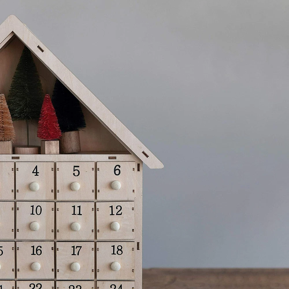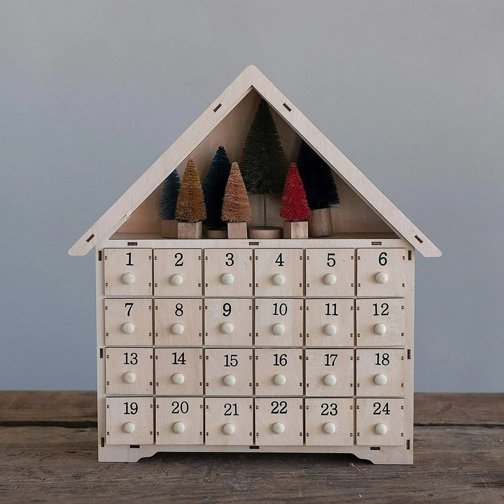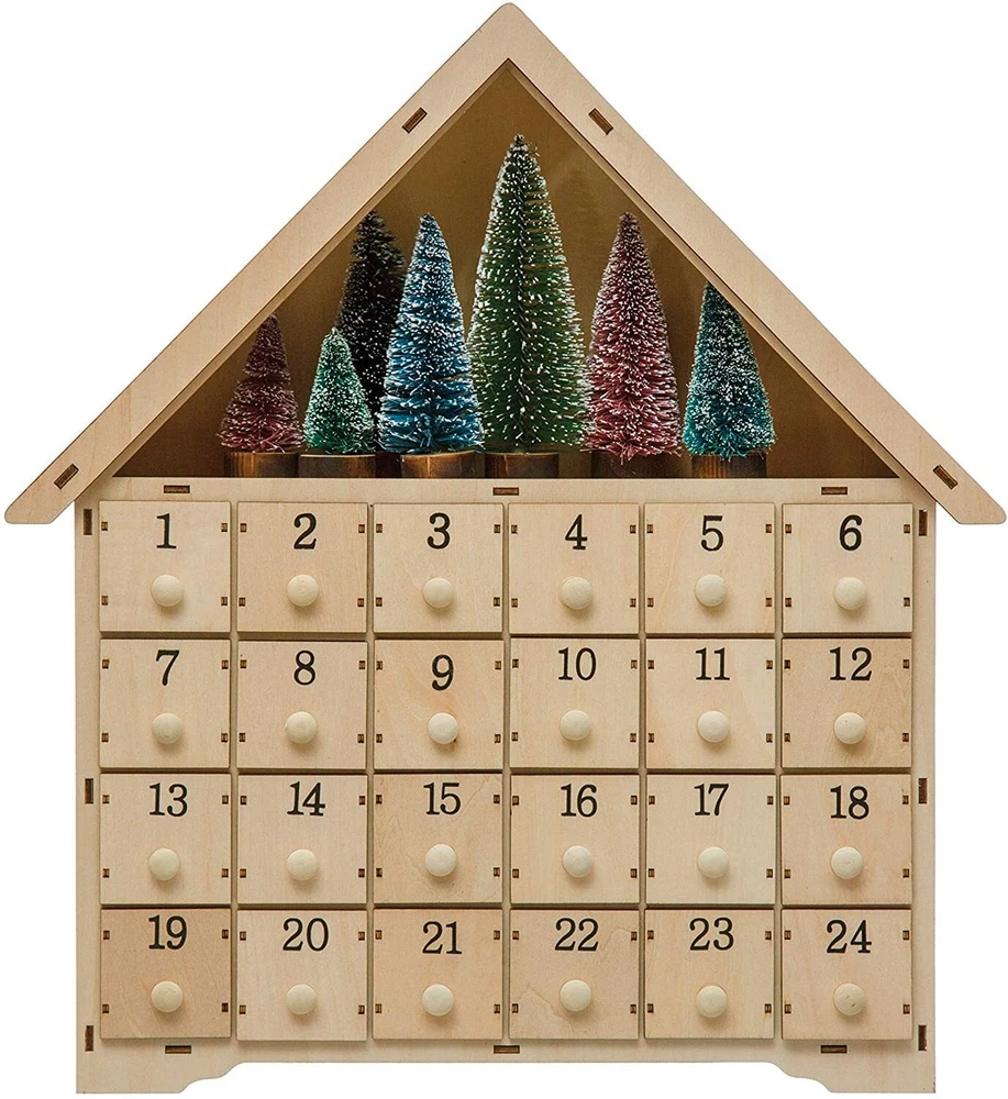 This advent calendar is a fun way to celebrate the advent season. Made out of wood, this advent calendar is set underneath a cute house with 7 bottle brush trees. With all 24 boxes, this piece looks great on tabletops and shelves for counting the days of advent with friends and family. 15-1/4"L x 16-1/2"H Wood House Advent Calendar w/ 24 Boxes & 7 Bottle Brush Trees Dimensions: 15.4" x 3.5" x 16.5" We are a store. All items are new in mint condition unless stated otherwise above. All items come in their original packaging with all paperwork. We will inspect items to confirm they are mint or upon request. Payment can be made with PayPal, Visa, MasterCard, Discover or American Express. We ship through Fed Ex or USPS; all packages are shipped 1 to 2 days after payment is received and are insured for their full value. Auctions must be paid with in 7 days of ending or a negative comment will be posted. We do NOT accept "best offers". We do NOT offer layaway on eBay auction items. On all sale items, shipping and handling charges will apply. As of February 1, 2010, we do not ship to all countries. All of our international shipping is processed through the eBay Global Shipping program. Buyers will need to contact eBay Global Shipping for combined shipping rates. We are NOT responsible for oversea custom charges, they are the responsibility of the buyer per eBay & PayPal rules. Pick Ups: We do welcome pick ups at our store after the item has been purchased thru eBay. Please call or email to confirm the item is ready. Returns: If you wish to return an item you purchased from Fairy-Tales-Inc, you must notify us within 3 days of receiving the item. Shipping fees will not be refunded. Buyer is responsible for fees incurred to return items to Fairy-Tales-Inc. We will assess a standard restocking fee of 20% for items returned. Credit for the item will not be issued until Fairy-Tales-Inc receives the item in its original condition it was received. We will not accept items that are returned without notice. All returns must have a Fairy-Tales-Inc return Authorization number (R.M.A) on the box. Damages caused in shipping must be reported to Fairy-Tales-Inc within 3 days after the item is received. Fairy-Tales-Inc will issue a full refund or replace the item after the shipping claim has been issued. Damages: If you receive a damaged item, please contact us with in 3 days after the item is received. We will replace the item immediately if in stock along with placing a claim with the shipping carrier or the manufacturer of the item. DO NOT ship this item back to us. We will issue a shipping call tag for the item to be picked up or destroyed. We will not accept items returned without notice. If we do not have the item, buyer is welcome to exchange the item for another of equal value, or we will issue a full refund on the damaged item. Holiday Shipping: For the Christmas Holiday, Orders must be placed and paid for by 2:00 PM on December 15, to be received by December 24, in the Continental United States. Orders will be shipped via Fed Ex or USPS unless requested otherwise. Shipping is NOT guaranteed due to unforeseen weather conditions and shipping carriers requirements. Orders shipping International via Fed Ex or USPS for the Christmas Holiday must be placed and paid for by 2:00 PM on November 30, to be received December 24. Again, shipping is NOT guaranteed due to unforeseen weather conditions and shipping carriers requirements. We will happily expedite shipping (next day, second day or three day select) with an additional charge to the buyer. ** Please Note: Stock photo from manufacturer that may not match exactly.**