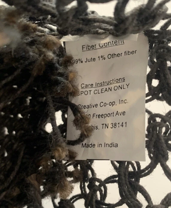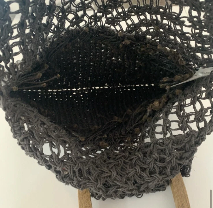 Creative Co-op Inc gray jute crochet handbag. Wooden handbag, not lined, use as purse or grocery bag. Length-Top of handle to bottom of bag 22" Length just crochet area 16" Width 13"...