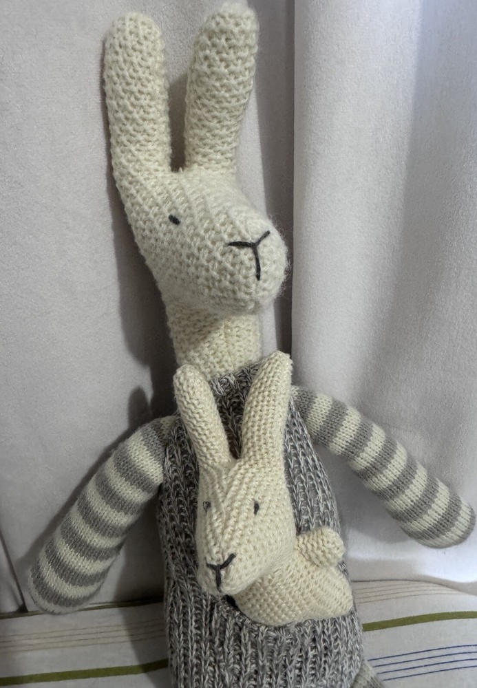 Such a sweet and huggable mother-and-baby pair! The knit material is so soft, and the crochet details add a charming handmade feel. The size is perfect—not too big, not too small—and the neutral colors fit any space. The joey tucked inside is the cutest surprise, making it a wonderful gift for kids or a cozy decoration for a nursery. It’s well-made, durable, and absolutely adorable! Highly recommend for anyone who loves unique plush toys.