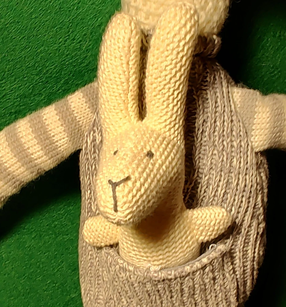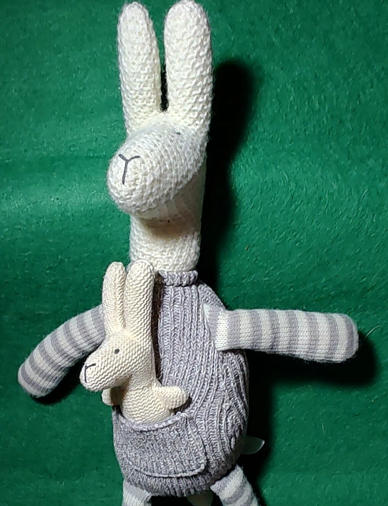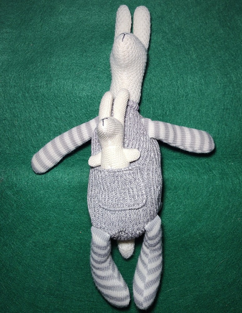 The Creative Co-op Kangaroo & Joey Plush is a medium-sized stuffed animal measuring 17 inches in gray and white colors. This adorable toy features a crocheted design, adding a unique and charming touch to its appearance. Perfect as a child's gift, the kangaroo and joey character family design adds a cute and playful element to the plush, making it a delightful addition to any toy collection. Idem 119-01