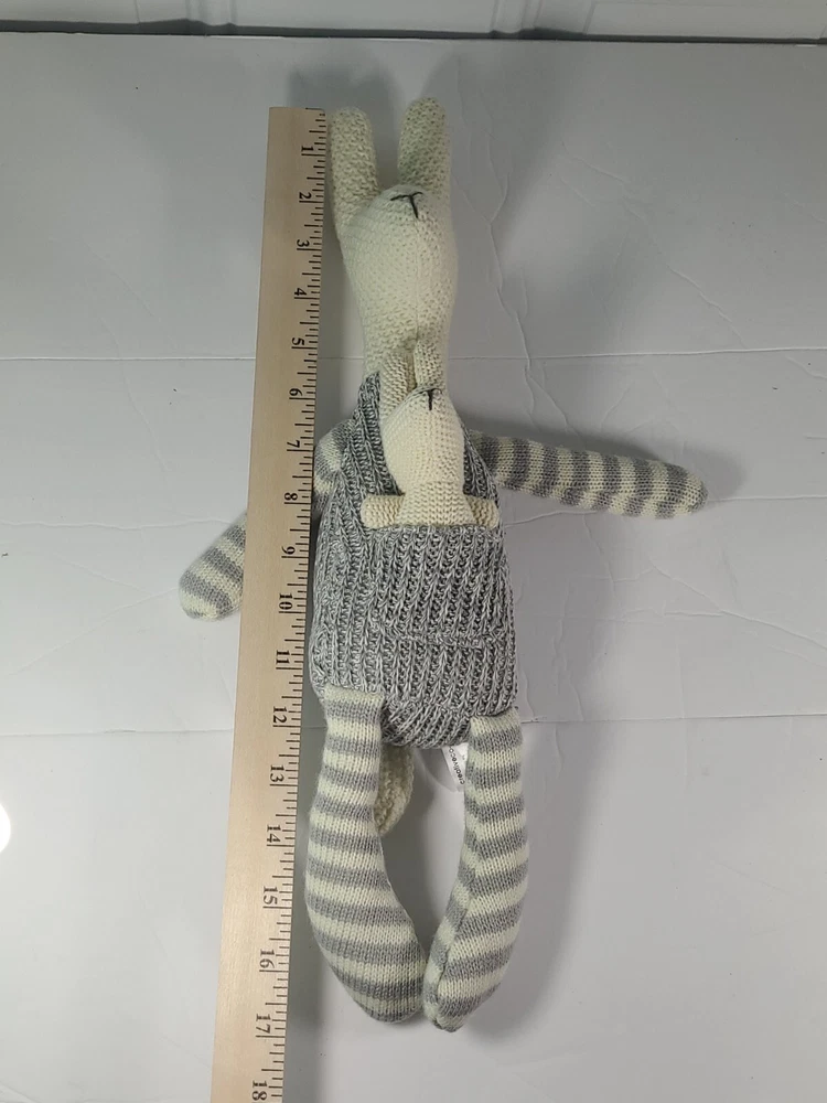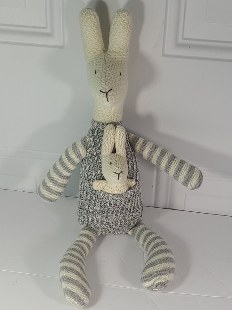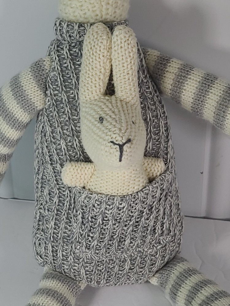 Creative Co-op Kangaroo & Joey Plush Knit Crocheted Grey White 17" Baby Lovee....
