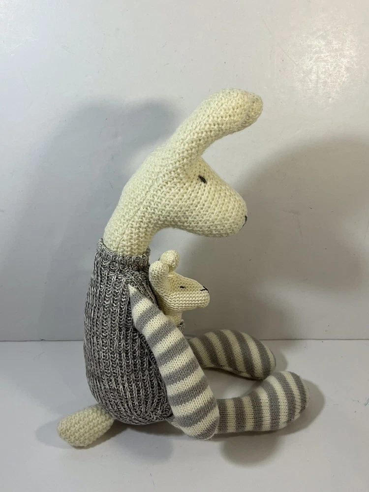 Absolutely love this adorable knit kangaroo and joey! The gray and cream colors are so soft and stylish, and the 17" size is perfect for cuddling or display. The quality is fantastic, and the little joey peeking out adds such a sweet touch. Great condition, super cute—definitely a must-have for plush lovers!