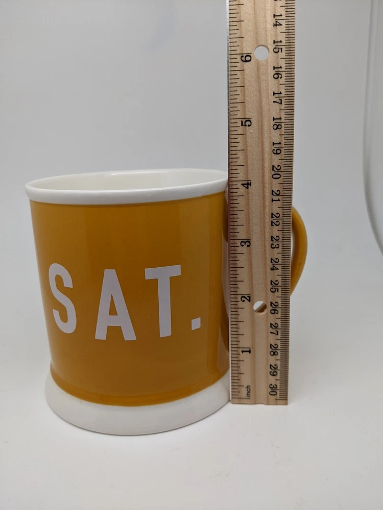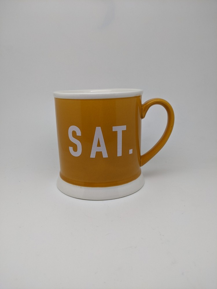 Creative Co-op Large Yellow Sat. Saturday Coffee Mug Wide Bottom..