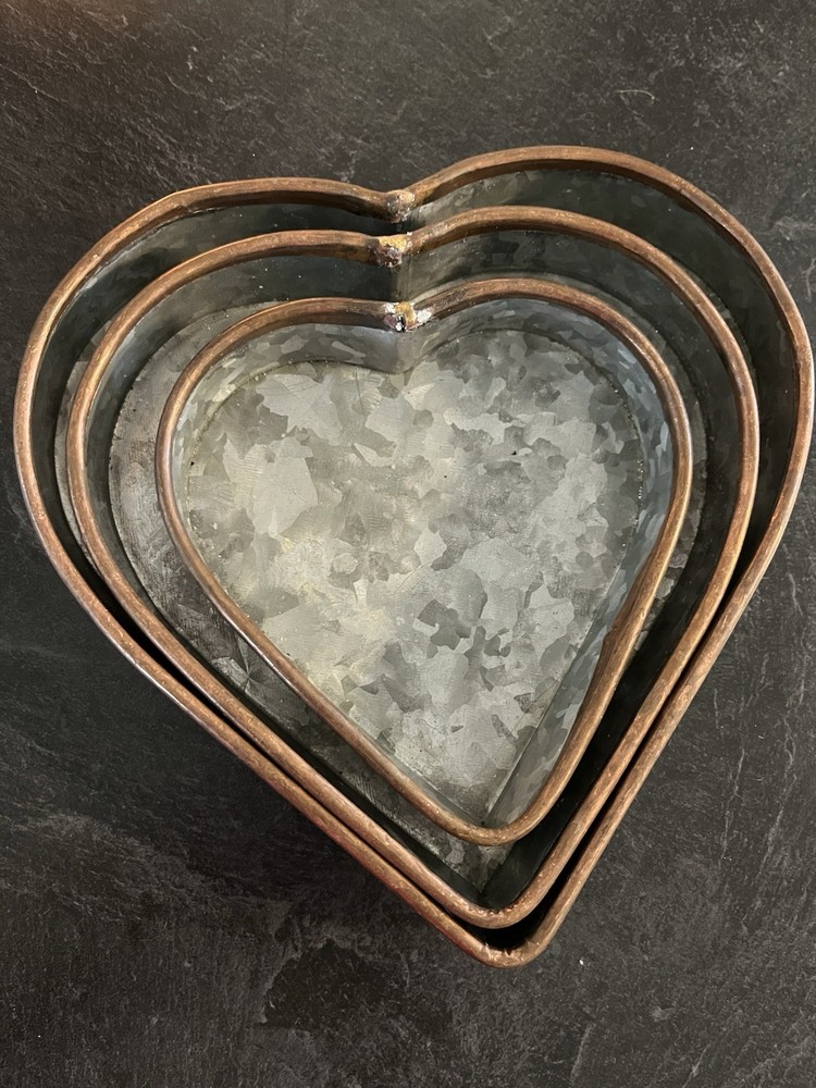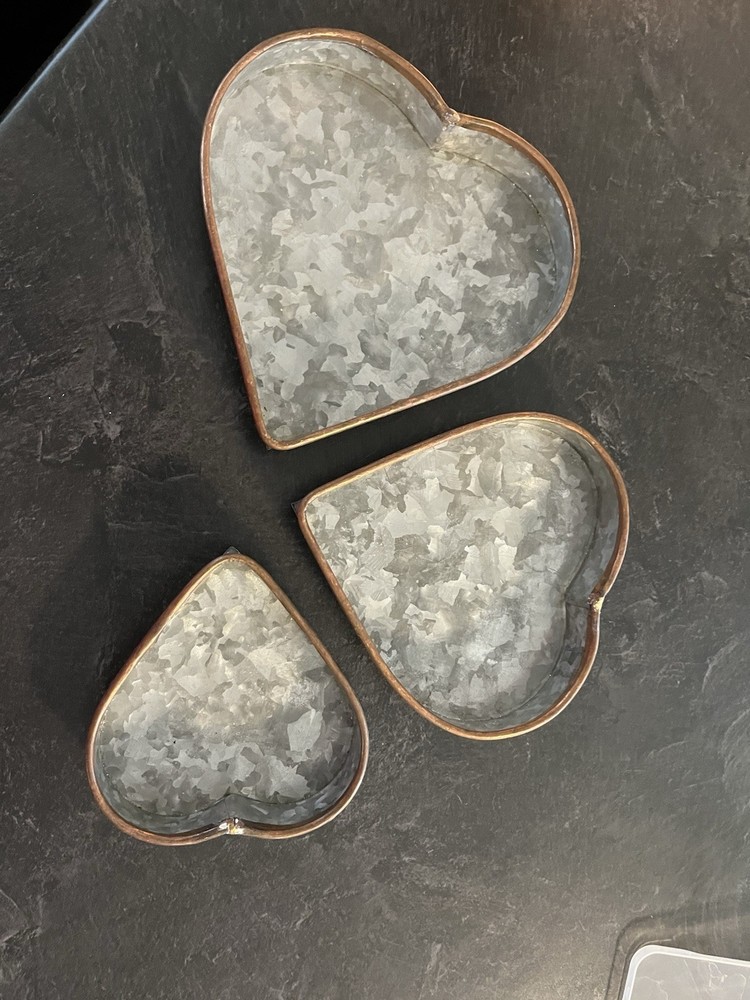 Creative Co-op Metal Hearts Brass Ring Around Top Set Of 3. Condition is New. Shipped with USPS Ground Advantage....