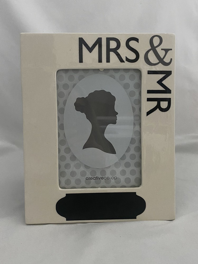 Creative Co-op - Mr. & Mrs. Ceramic Photo Frame With Chalk Writing Box...
