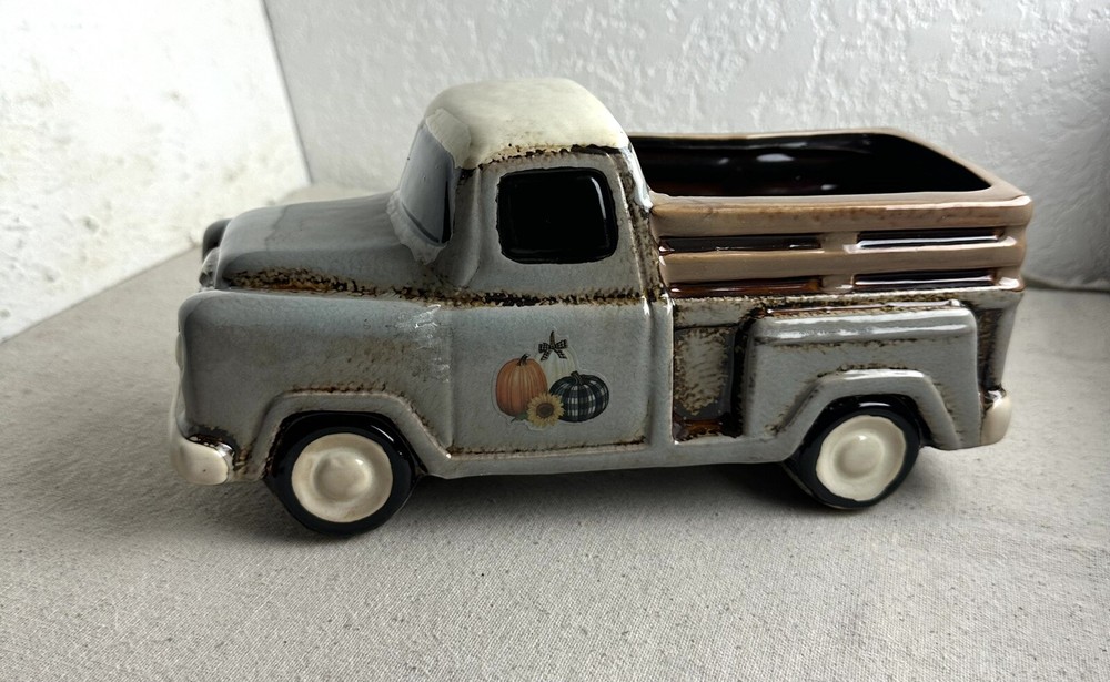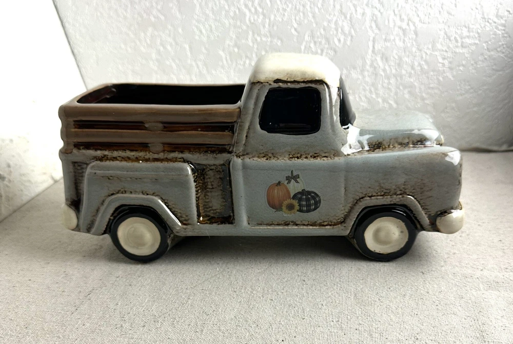 This adorable vintage-style truck planter is such a charming find! The pumpkin decals add a fun seasonal touch, and the size is perfect for small succulents or herbs. It’s in great condition with no damage, and the open design under the cab makes it unique. A cute, rustic addition to any shelf or windowsill—love the farmhouse vibe!