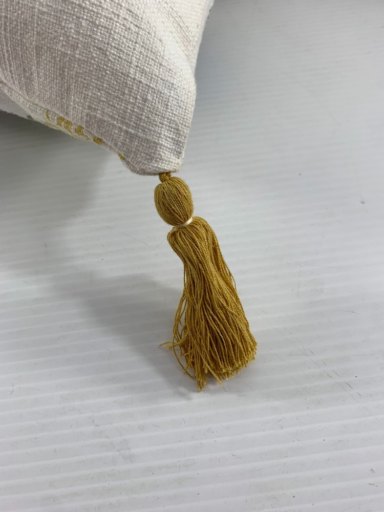 Creative Coop Pillow White Blue Green Gold Leaf Pattern 16" Square Tassel Corners New With Tags Plain White on Other Side Accent Decorative....