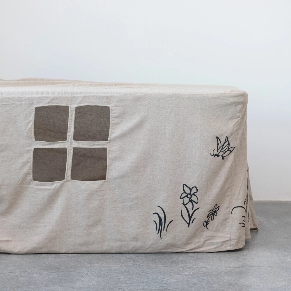 Printed Tablecloth Children's Playhouse w/ Flap Door & Window Cut-Outs - DF7512 【 Creative Co-op 】 Dimensions: 72"L x 31"W x 30"H Material: Cotton Chambray We are a store. All items are new in mint condition unless stated otherwise above. All items come in their original packaging with all paperwork. We will inspect items to confirm they are mint or upon request. Insurance, shipping & handling in U.S. is FREE. Payment can be made with PayPal, Visa, MasterCard, Discover or American Express. We ship through UPS ground; all packages are shipped 1 to 2 days after payment is received and are insured for their full value. Auctions must be paid with in 10 days of ending or a negative comment will be posted. We do NOT accept "best offers". Our best price is listed on eBay . We do NOT offer Layaways on eBay auction items. On all sale items, shipping and handling charges will apply. We do combine shipping charges for multiple items purchased. Please wait to pay for your items until we send you an invoice to obtain the combined shipping charges. Shipping outside of the United States is additional. As of February 1, 2010, we do not ship to all countries. Please request a shipping charge to your location before bidding, we charge actual shipping rates thru the USPS. We are NOT responsible for oversea custom charges, they are the responsibility of the buyer per eBay & PayPal rules. Pick Ups: We do welcome pick ups at our store after the item has been purchased thru eBay. Returns: If you wish to return an item you purchased from FairyTales-Inc, you must notify us within 3 days of receiving the item. Shipping fees will not be refunded. Buyer is responsible for fees incurred to return items to FairyTales-Inc. Credit for the item will not be issued until FairyTales-Inc receives the item in its original condition it was received. We will not accept items that are returned with out notice. All returns must have a FairyTales-Inc return Authorization number on the box. Damages caused in shipping must be report to FairyTales-Inc with in 3 days after the item is received. FairyTales-Inc will issue a full refund or replace the item after the shipping claim has been issued. Damages: If you receive a damaged item, please contact us with in 3 days after the item is received. We will replace the item immediately if in stock along with placing a claim with the shipping carrier or the manufacturer of the item. DO NOT ship this item back to us. We will issue a shipping call tag for the item to be picked up or destroyed. We will not accept items returned without notice. If we do not have the item, buyer is welcome to exchange the item for another of equal value. Or we will issue a full refund on the damaged item. Holiday Shipping: For the Christmas Holiday, Orders must be placed and paid for by 2:00 PM on December 15, to be received by December 24, in the Continental United States. Orders will be shipped via Fed Ex or USPS unless requested otherwise. Shipping is NOT guaranteed due to unforeseen weather conditions and shipping carriers requirements. Orders shipping International via the Fed Ex or USPS for the Christmas Holiday must be placed and paid for by 2:00 PM on November 30, to be received December 24. Again, shipping is NOT guaranteed due to unforeseen weather conditions and shipping carriers requirements. We will happily expedite shipping (next day, second day or three day select) with an additional charge to the buyer. ** Please Note: Stock photo from manufacturer that may not match exactly.**