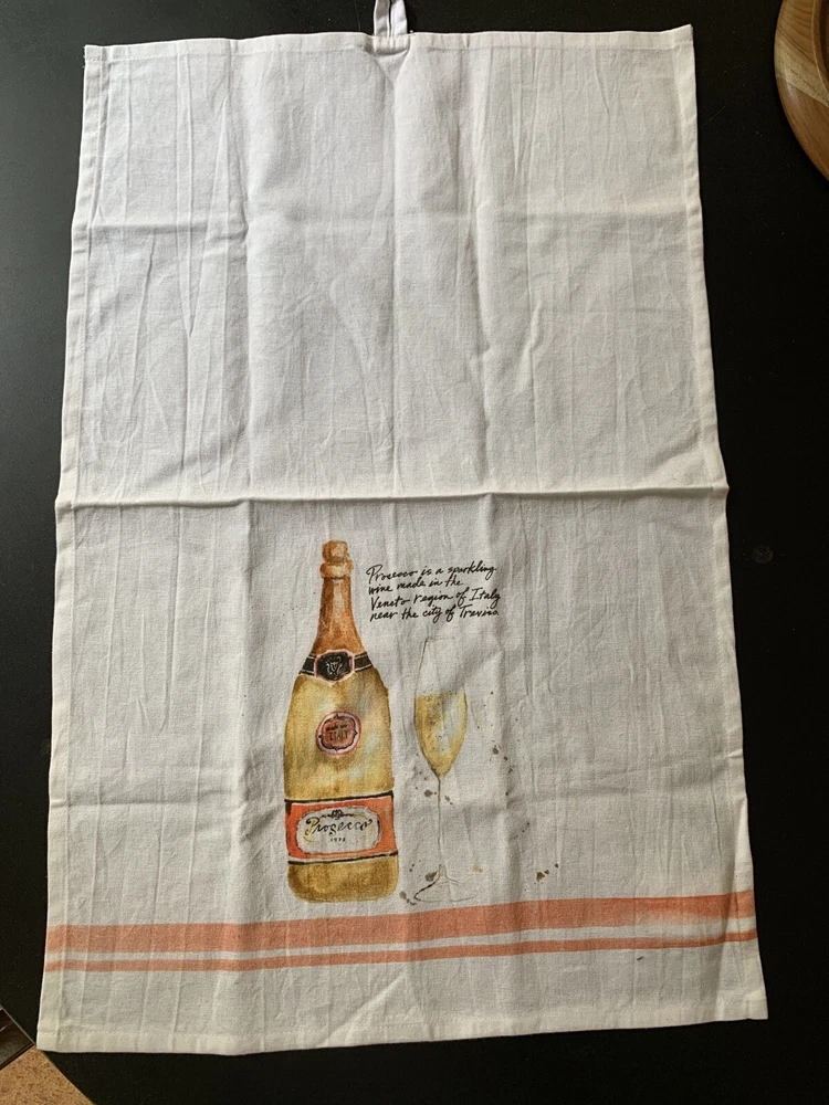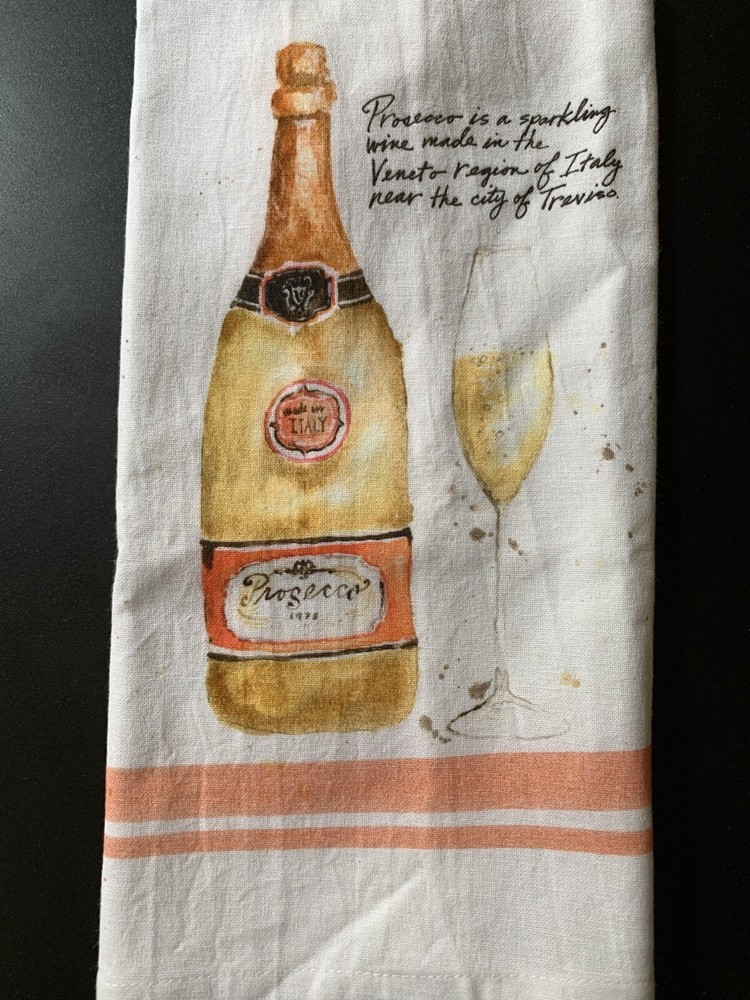 Creative Co-op Prosecco Dish Towel Bubbly Wine Lover Hand Towel Tea Towel Cheers. Condition is New with tags. Shipped with USPS First Class Package. 100% cotton Loop to hang with 28 “ length
