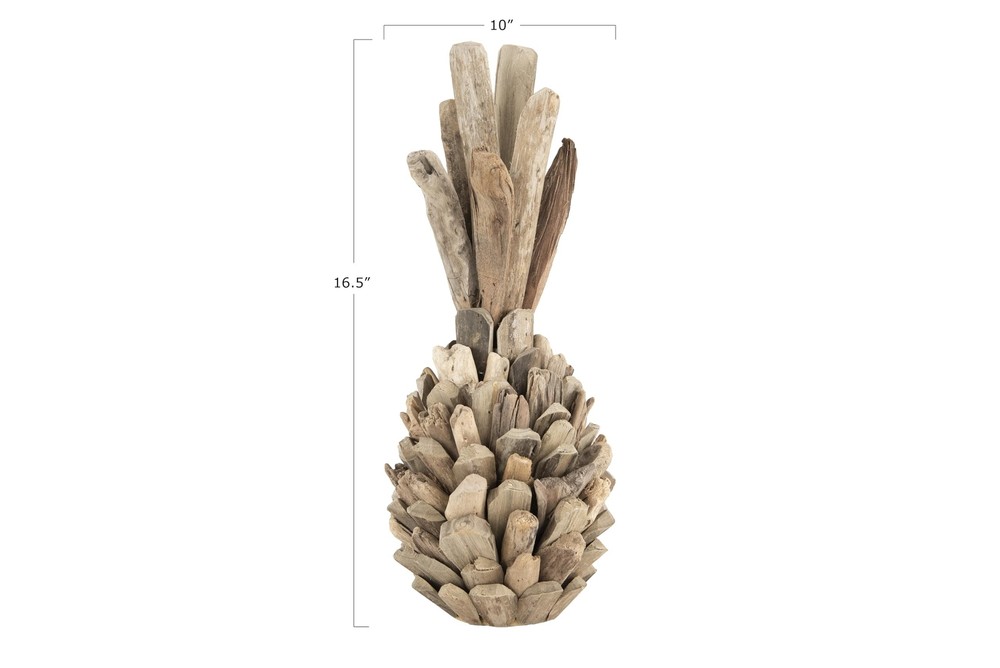 Creative Co-op Pure Driftwood Pineapple Decoration, Brown Product Details Color: Brown Brand: Creative Co-Op Theme: Tropical Material: Wood Style: Pineapple Color: Brown Brand: Creative Co-Op Theme: Tropical Material: Wood Style: Pineapple Occasion: Mother's Day, Christmas, Birthday, Housewarm Product Dimensions: 10"D x 10"W x 16.5"H Recommended Uses For Product: Home Mounting Type: Tabletop Cartoon Character: Nature Finish Type: Natural, Unfinished Special Feature: Natural Driftwood, Pineapple-shaped Decoration Included Components: Driftwood Pineapple Decoration Item Weight: 1.9 Pounds Product Care Instructions: Wipe Clean Collection Name: Summer Global Trade Identification Number: 42 Seasons: All UPC: 807472897042 Number of Items: 1 Item Weight: 1.94 pounds Manufacturer: Creative Co-op Country of Origin: Philippines Item model number: DA5909 Is Discontinued By Manufacturer: No Finish types: Natural, Unfinished Assembly required: No Number of pieces: 1 Batteries required: No Made with natural aged driftwood Each one will vary Perfect for the tropical decor 10L x 10W x 16.5H in. Bring a tropical feel and the notion of summer into your home. Each piece is made of real driftwood making your pineapple a unique work of art. It is perfect for a waterfront home or added décor in a sun room.