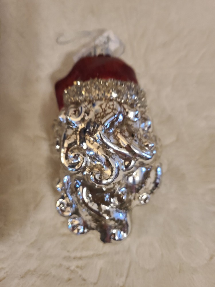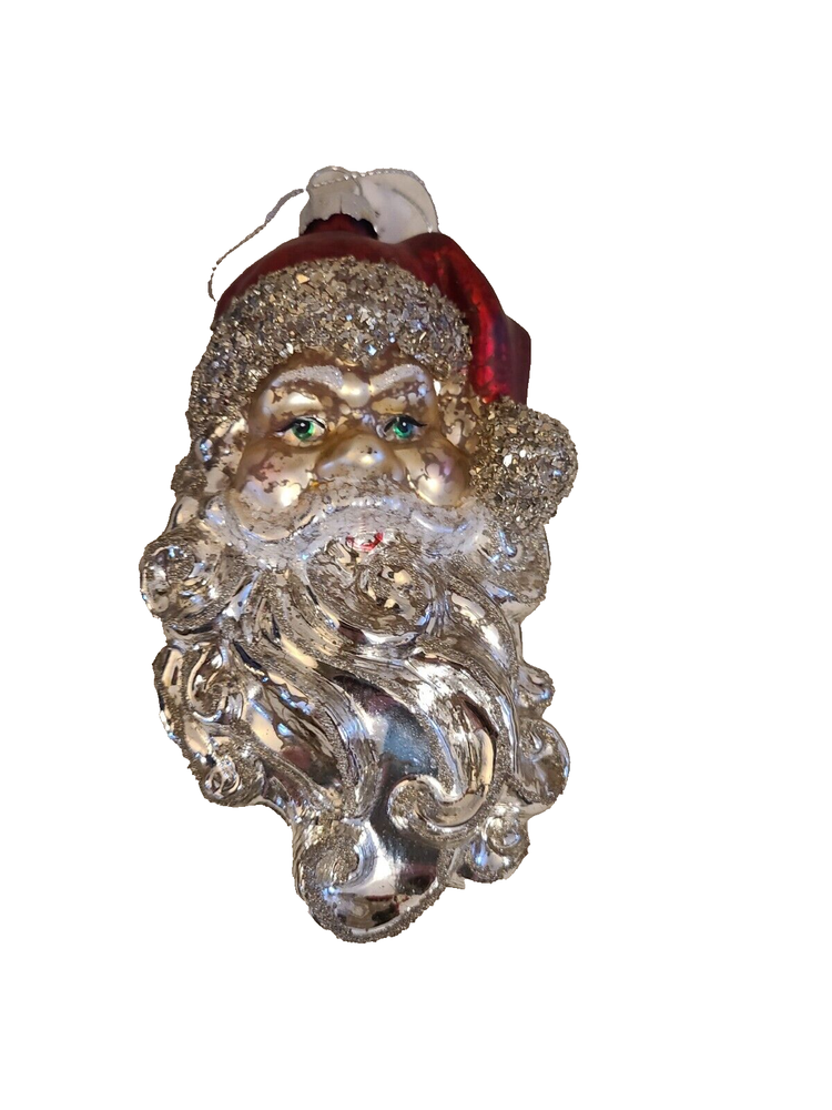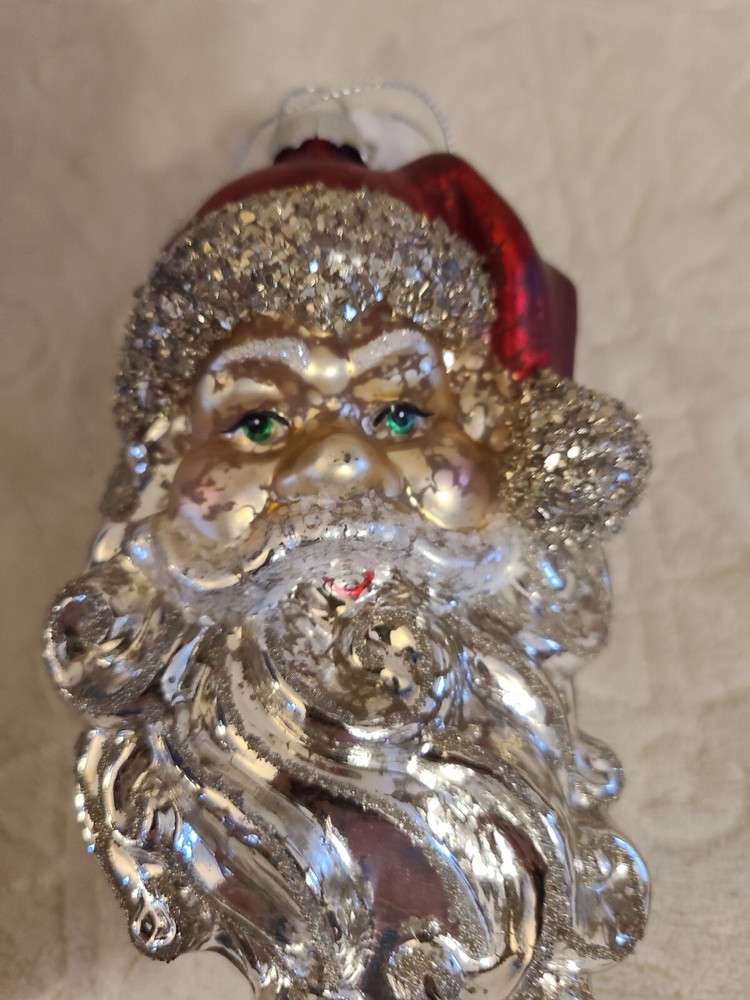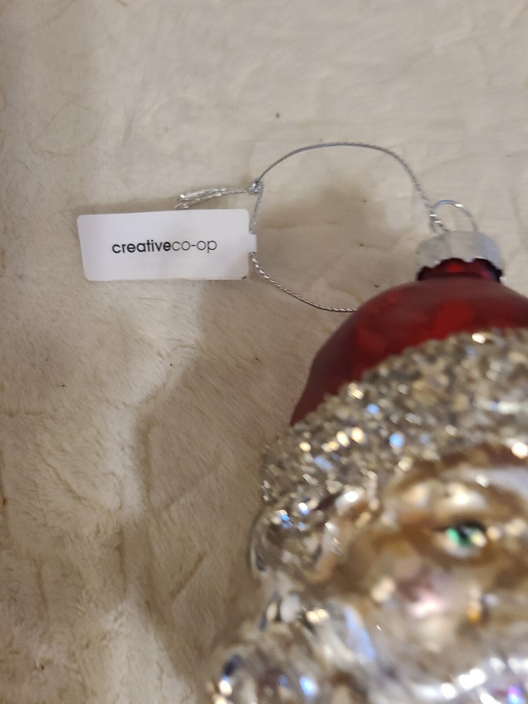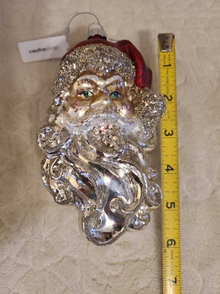 Creative Co-op Santa Claus Head Blown Glass Christmas Tree Ornament silver....