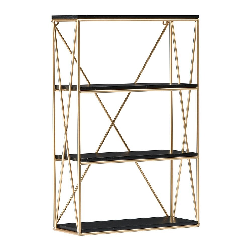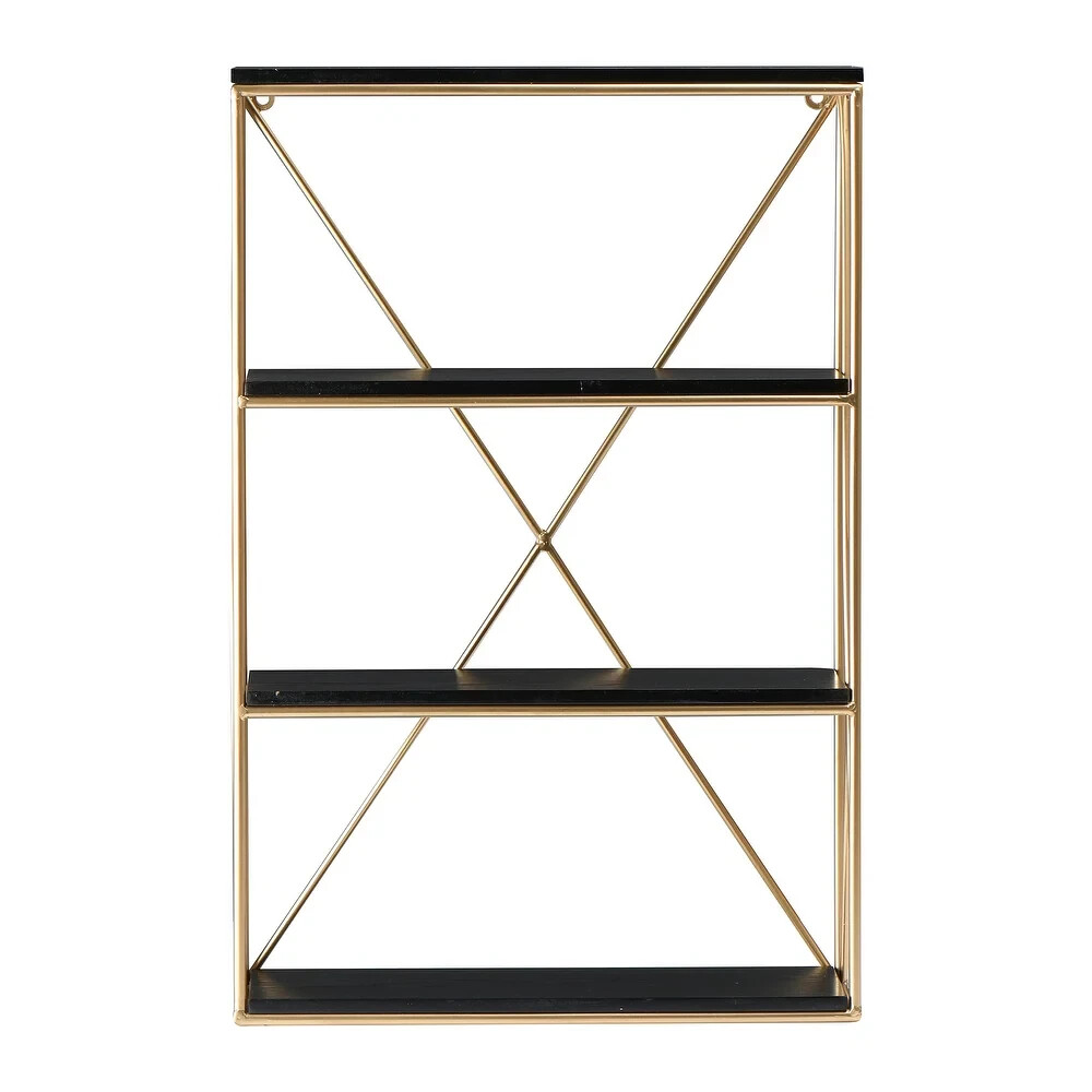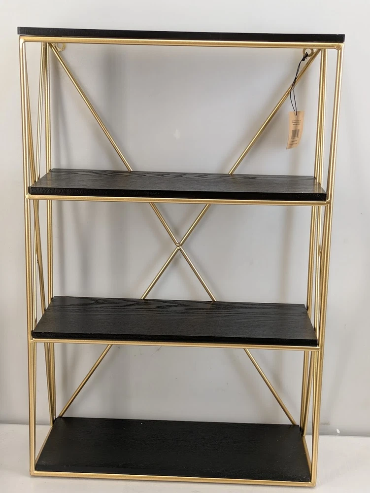 Item Condition New Item Location Ships from our warehouse in Las Vegas, Nevada, 89102, USA Fast FREE Shipping We handle all paid orders within 1 business day. Best Offers Accepted Offers are reviewed at the close of business each night. We accept reasonable offers for - Multiple units of the same item - Errors or condition changes within our listing - Combining shipping for 2 or more separate orders Return Policy We offer a 30 day return window from when you receive the item. Items must be in the same condition and in original packaging. Product Description Rectangle wall shelf with four shelves Crafted of wood with a soft finish and iron with brass finish Easy mounting Ideal for small space solutions