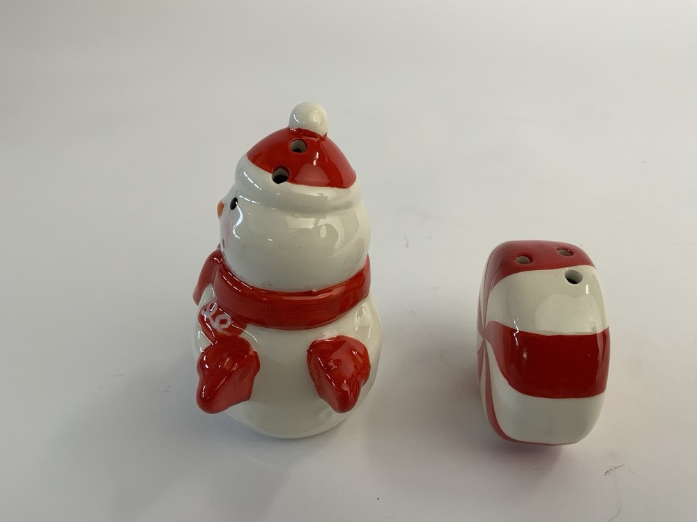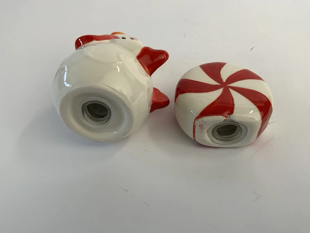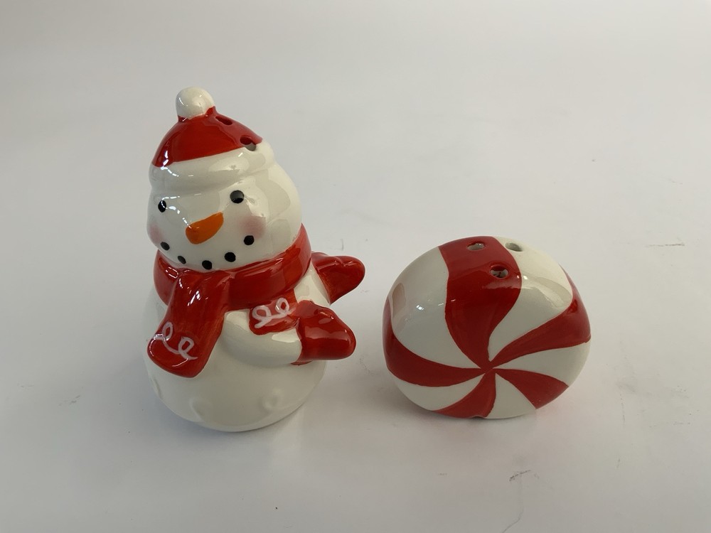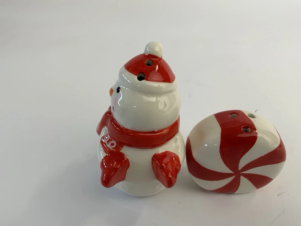 Add some festive cheer to your kitchen with this Creative Co-op XS5270 Salt & Pepper Set. The set includes two pieces, a pepper shaker and a salt shaker, both shaped like a snowman and peppermint candy. The red and white colors, along with the whimsical design, make this set perfect for the holiday season. Crafted from dolomite, this medium-sized set is food safe and features a lid for easy storage. Measuring 4.4 inches in height and 2.4 inches in width, this set is the perfect addition to any kitchen. Bring some holiday joy to your meals with this Creative Co-op Salt & Pepper Set.