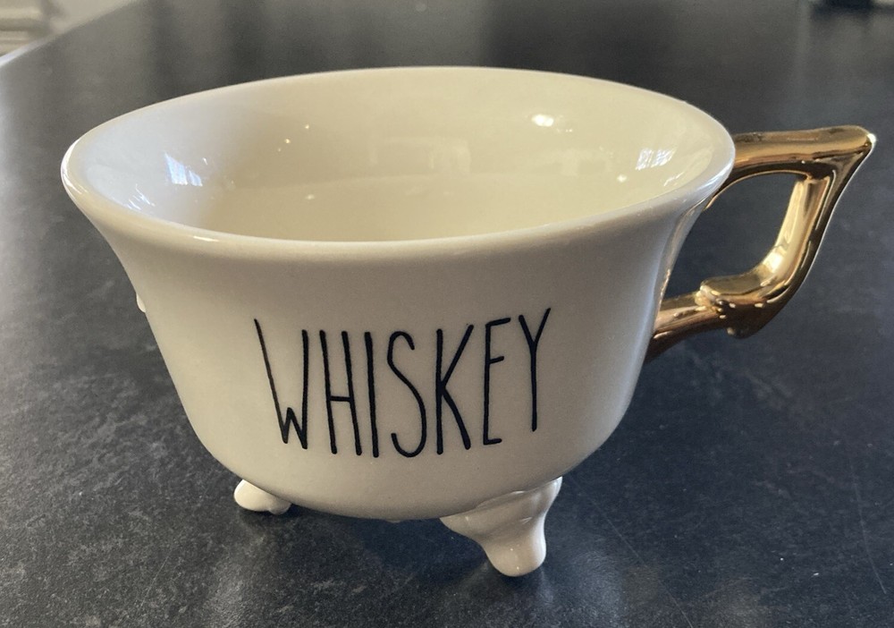 Upgrade your whiskey, coffee, or tea time with this stylish and functional Creative Co-op stoneware tea cup. Crafted from high-quality ceramic, this round tea cup features a novelty pattern and a gold handle, adding a touch of elegance to your beverage experience. Perfect for all occasions, this tea cup has a capacity of 12 fl oz and measures 2 3/4 inches in height and 4 1/4 inches in width, weighing 8.6 oz. This cup is preowned and in excellent condition.