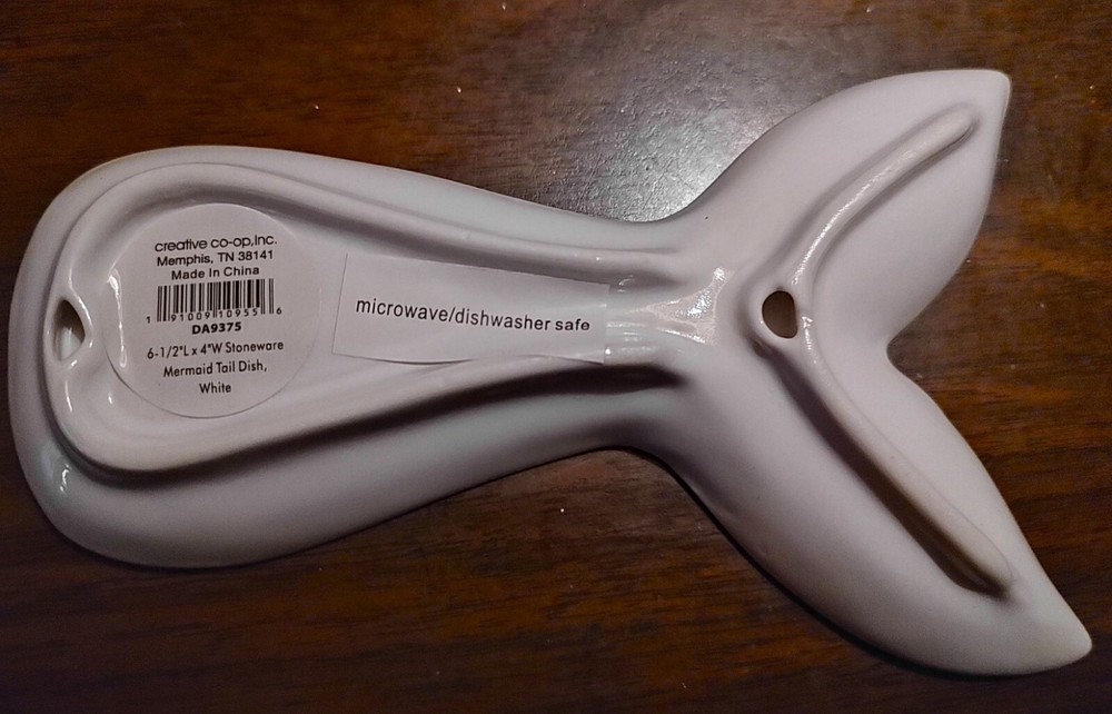 Keep your kitchen counter clean and tidy with this stunning Creative Co-op Stoneware Mermaid Tail Spoon Rest/Dish. Made of high-quality stoneware, this spoon rest is perfect for all occasions and can be used to hold spoons, spatulas, and other kitchen utensils. The beautiful mermaid theme and white color make it a perfect addition to any kitchen décor. The spoon rest is not just functional but also decorative. It is an ideal gift for your loved ones who love cooking and want to keep their kitchen organized. With its durable material and easy to clean surface, this spoon rest is sure to last for years. It could also be used as an h'orderve plate. This item is microwave and dishwasher safe! This would also make a cute trinket dish for a little girl who loves mermaids!
