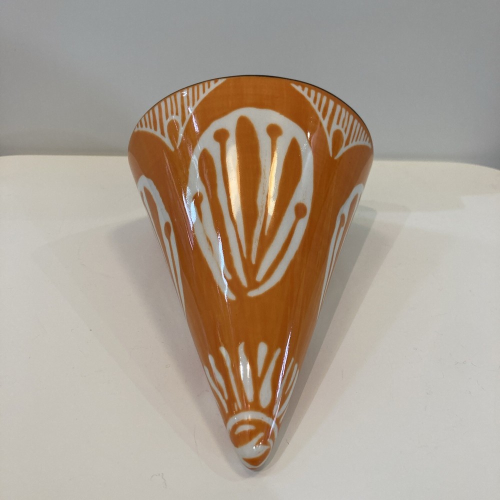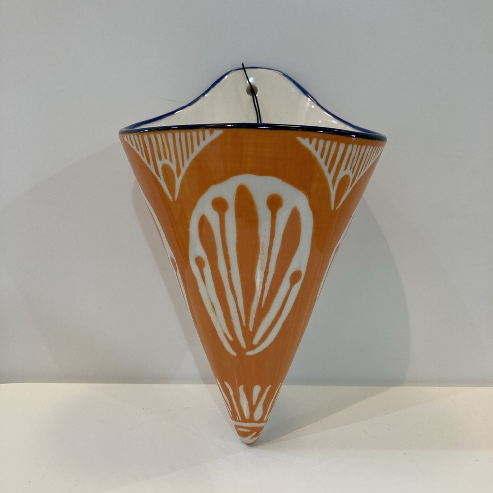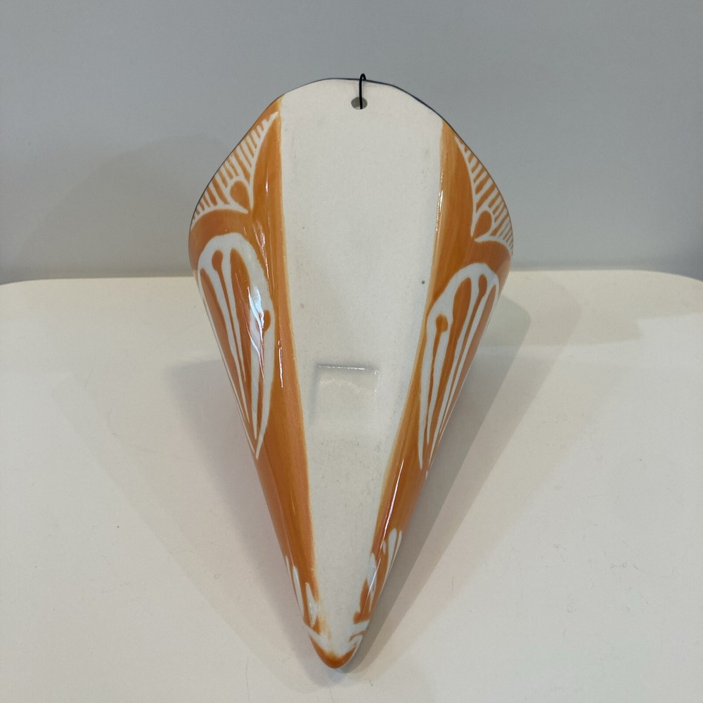 Creative Co Op Stoneware Wall Cone Vase Orange, blue, and white Approximately 8 inches tall Approximately 5 inches wide Brand New with tags Beautiful stoneware