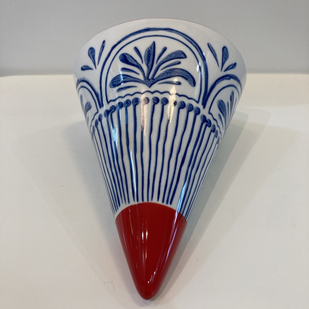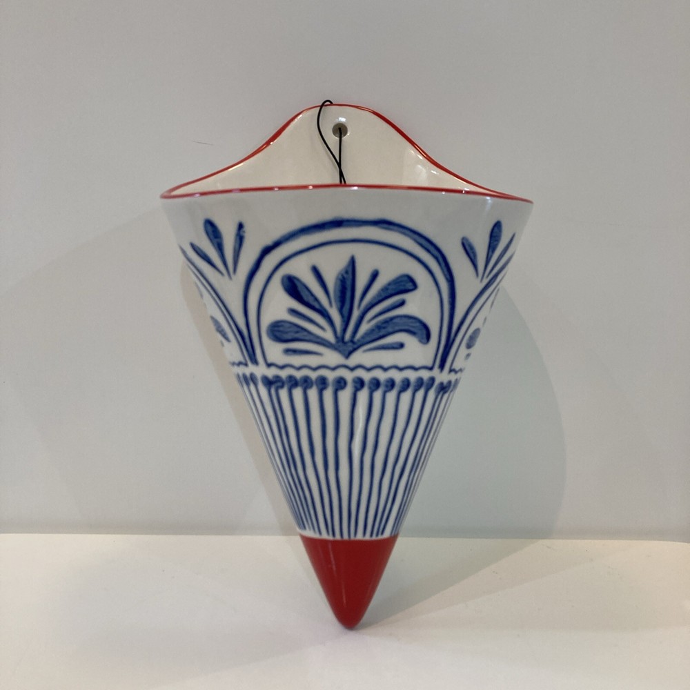 Creative Co Op Stoneware Wall Cone Vase Red, blue, and white Approximately 8 inches tall Approximately 5 inches wide Brand New with tags Beautiful stoneware