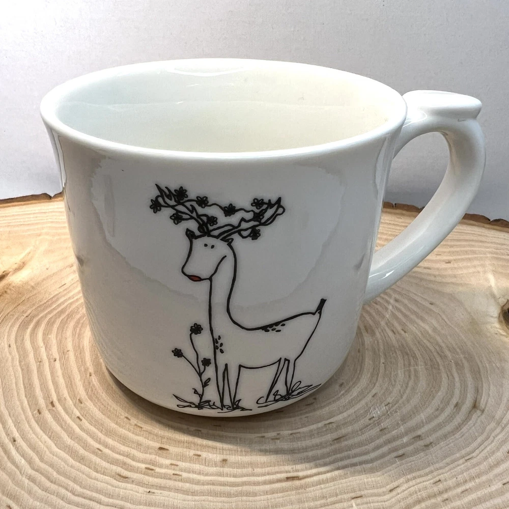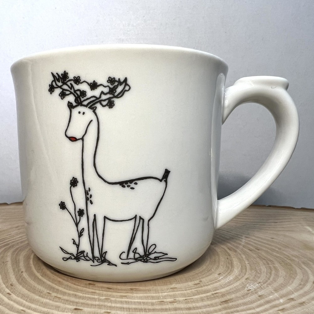 Creative Co-op Tawnya Norton Deer With Red Nose Microwave/Dishwasher/Oven Safe. 10 oz capacity. Reindeer Deer Holiday Christmas Festive...
