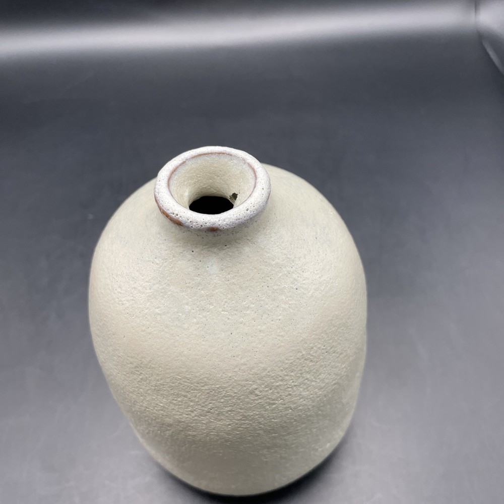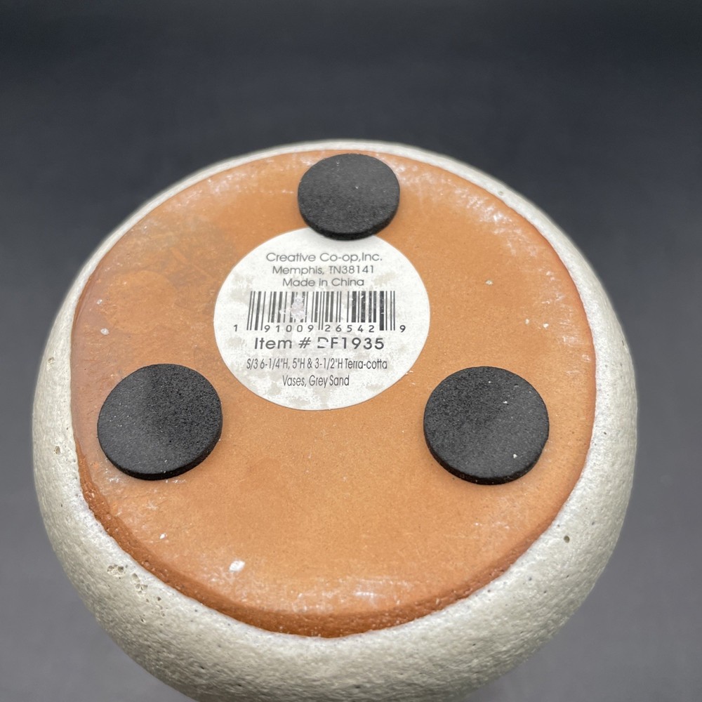 The Creative Co-Op Terra Cotta Bottle Bud Vase stands at 5 inches tall with a gray sand color and textured finish, adding a unique touch to any decor. Made from terracotta, this vase is crafted using art pottery techniques in China. Its charming design and neutral tone make it a versatile piece that can complement a variety of styles, whether displayed on a shelf or used as a standalone accent. There is a small hole in the neck of the bottle (see pics) that does not affect usability. It is from how the vase was made and was purchased with that flaw.