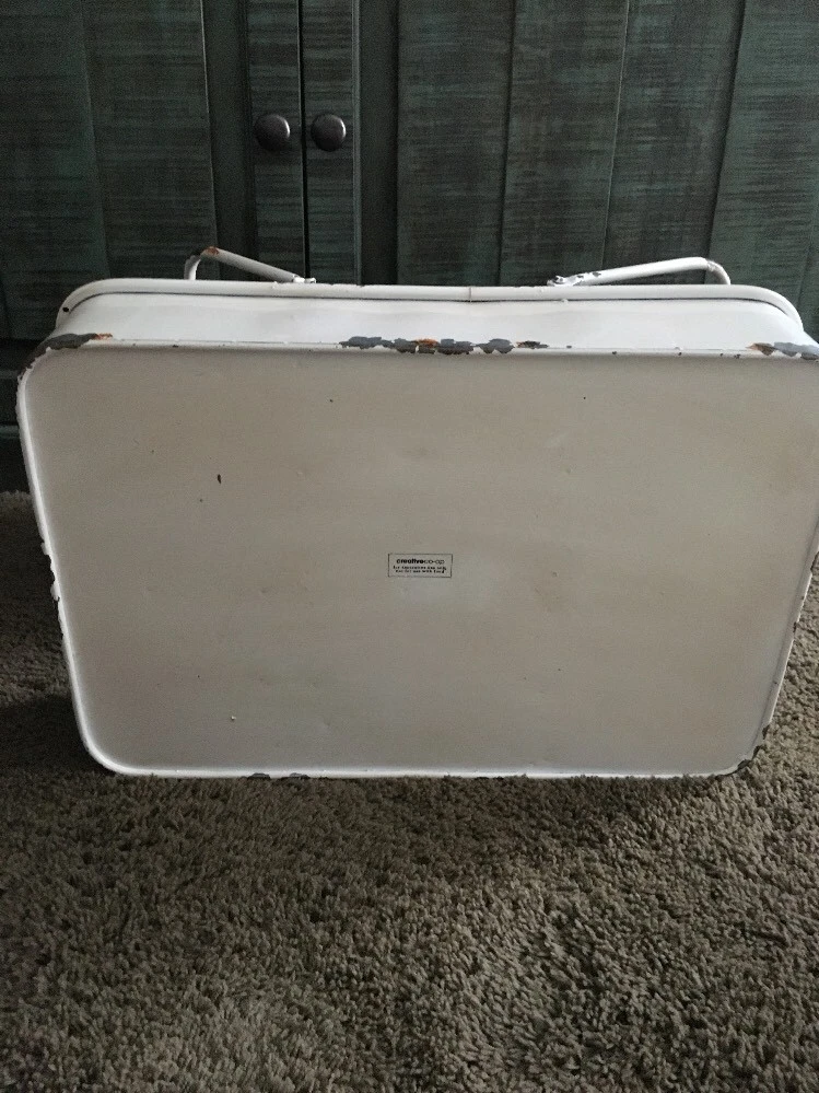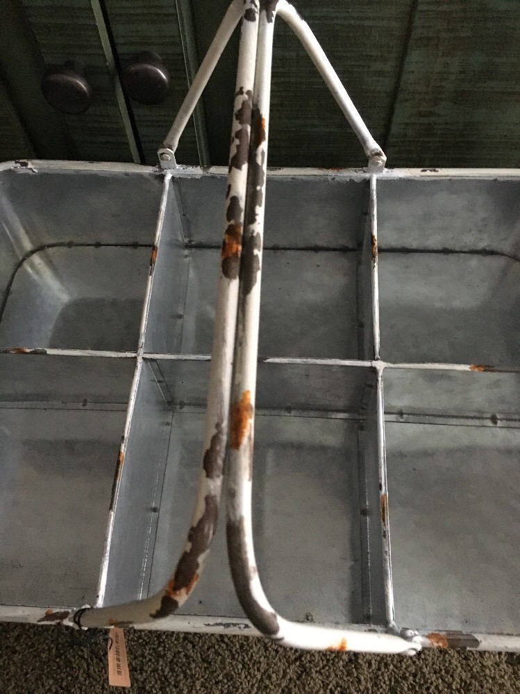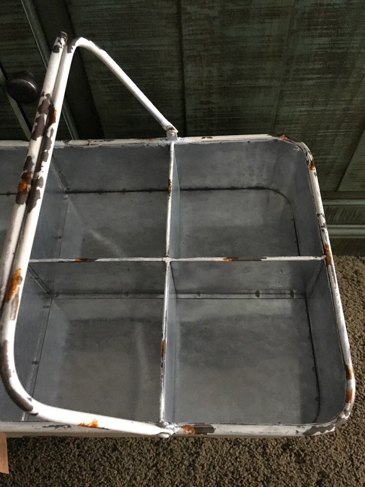 NWT creative co-op Distressed compartment tin basket with handles. Measures 18 1/2” long Price is for 1(2 available)...