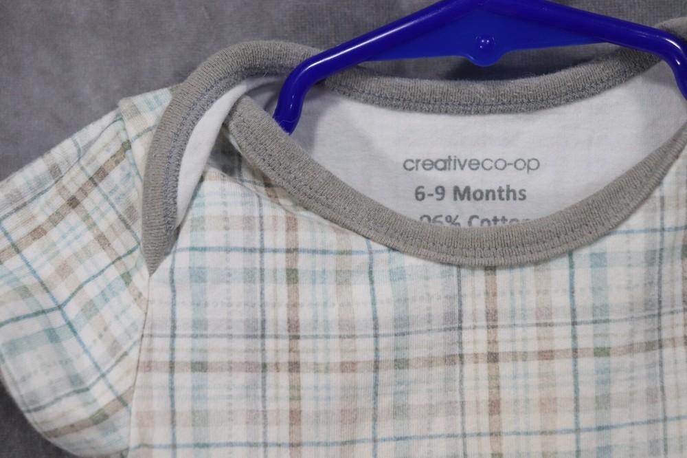This creative Co-op unisex baby bodysuit is perfect for your little one's casual summer, fall, or spring wardrobe. The white striped pattern adds a touch of style to the short sleeve, snap closure, crew neck design. Made with a blend of spandex and cotton, this comfortable one-piece is machine washable for easy care. Ideal for everyday wear, this 6-9 month old baby shorts outfit is suitable for both baby boys and girls. The set includes one piece with a blinded fabric type and is not vintage or personalized. This baby bodysuit is a great addition to your little one's wardrobe and is perfect for any occasion.