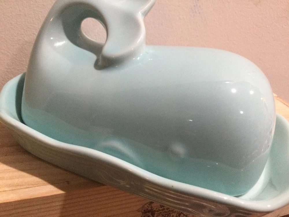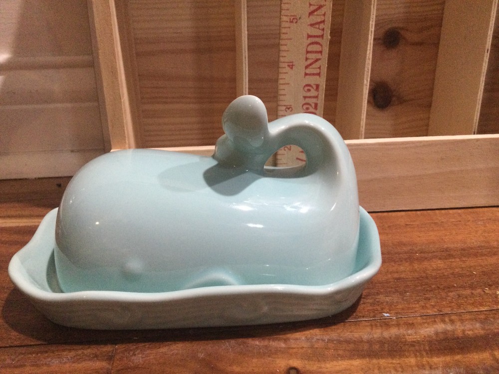 This Creative Co-Op butter dish is a must-have for any kitchen. Its unique whale shape and aqua color make it a great addition to any dining table. The dish comes with a lid to keep your butter fresh and protected. Its all-over pattern and nautical theme give it a Mediterranean style that is perfect for any occasion. The dish is made of high-quality materials and is perfect for those who appreciate creative co-op products. It is suitable for dinner parties, family gatherings, or even for everyday use. Get this butter dish today and add a touch of elegance to your dining table. sellersnote: box126, shelf22