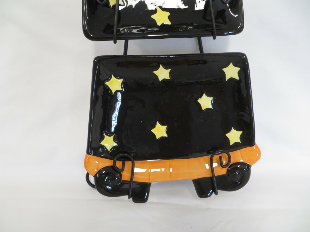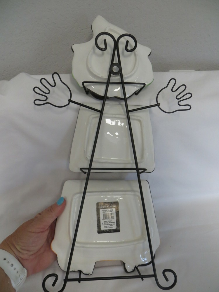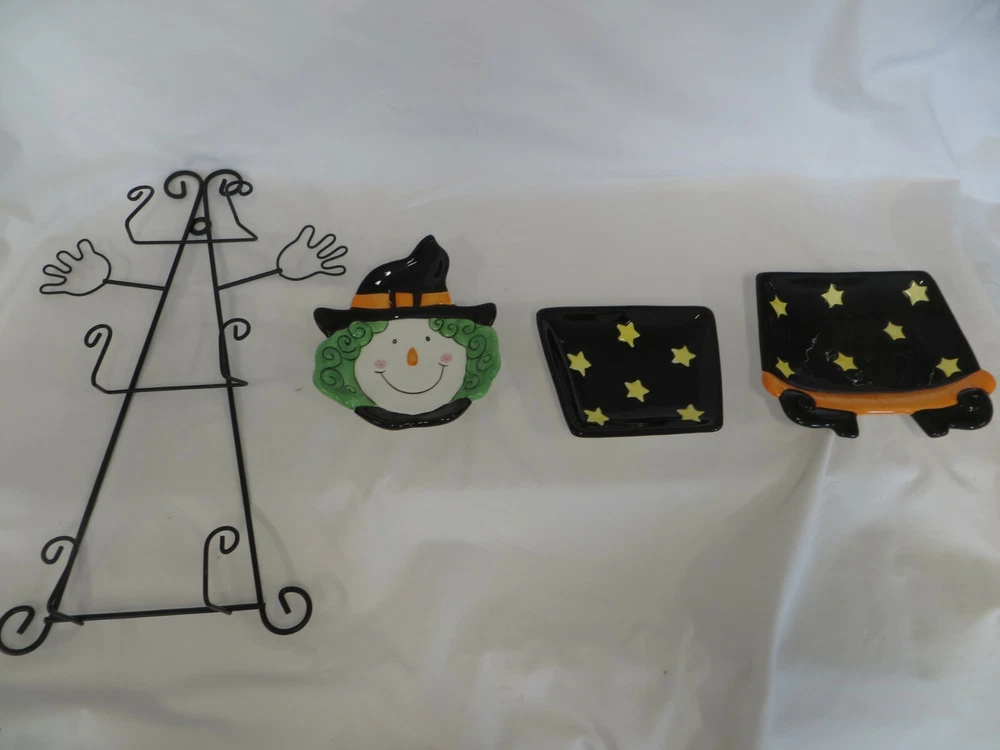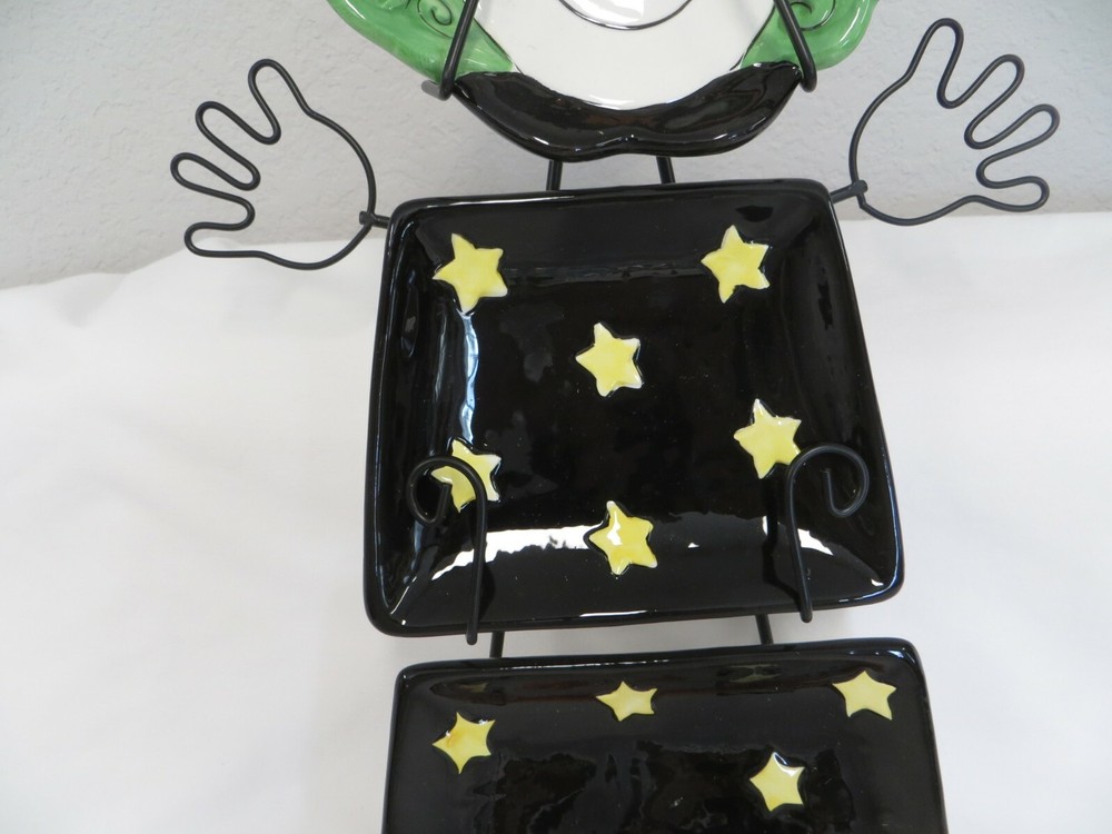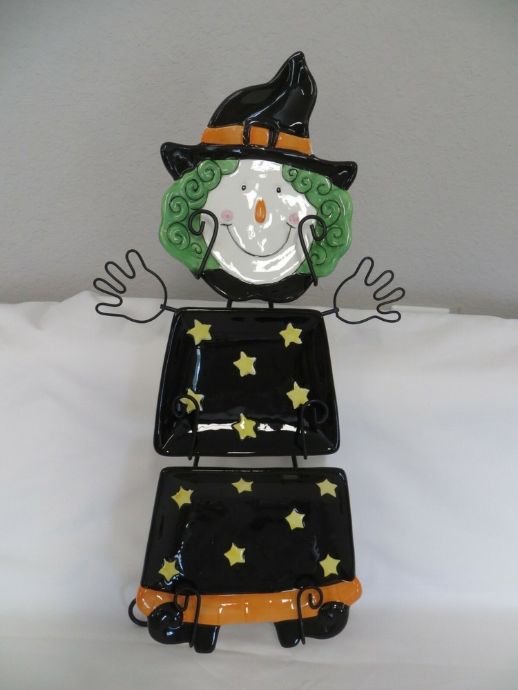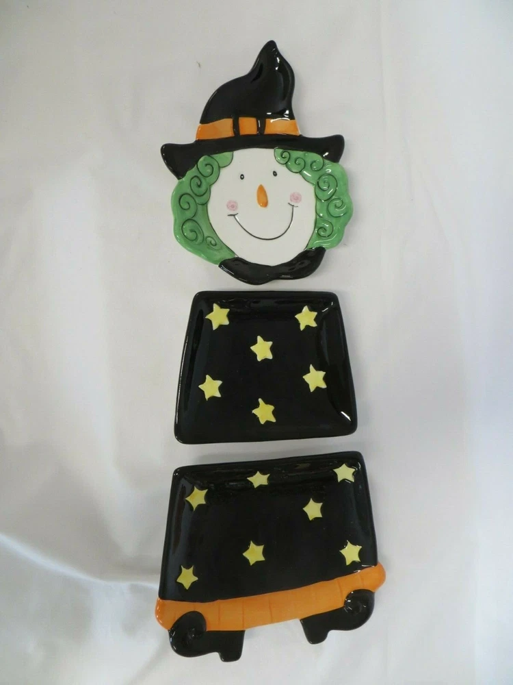 Creative Co-op Witch Wall Decoration or Can be used as s Serving Set when not mounted on the wall. The three ceramic pieces hang on the wire wall mount. It measures approximately 10" wide x 20" tall. It is not in the original box, but I don't think it was ever used by the way that it looks, and based on the rest of the items in the estate.