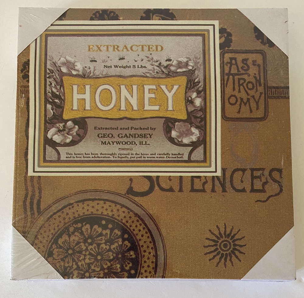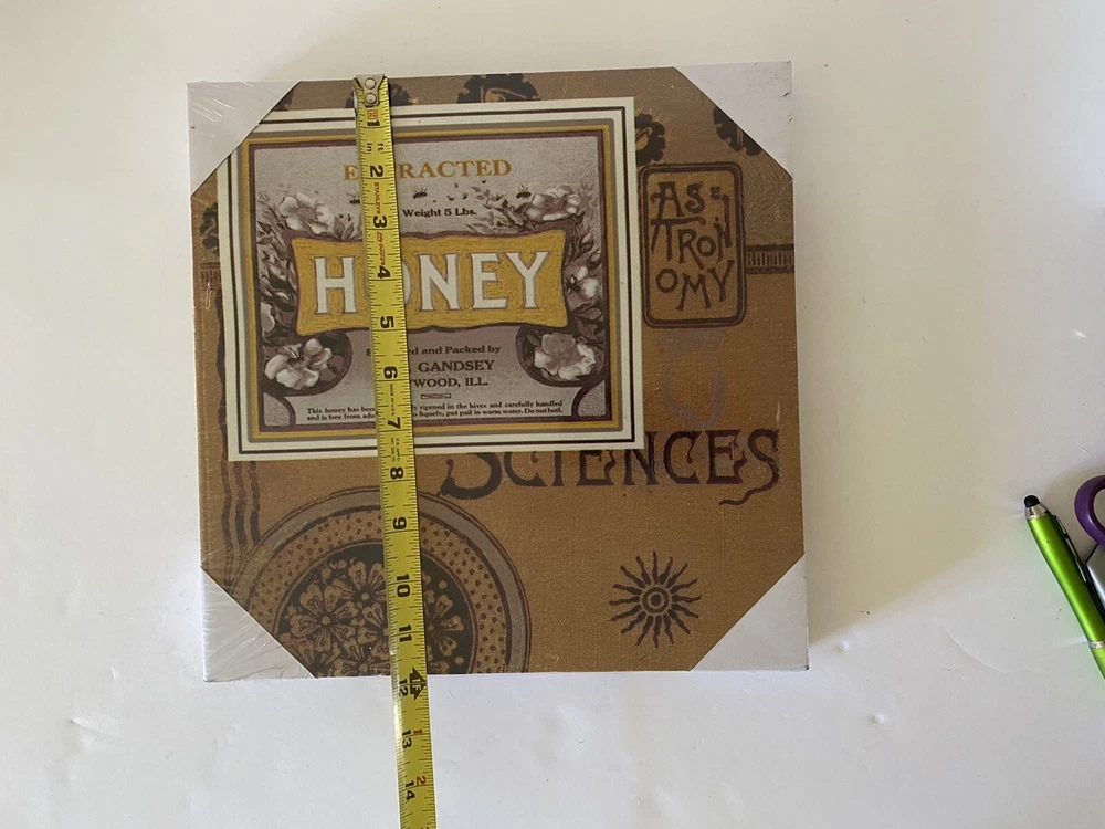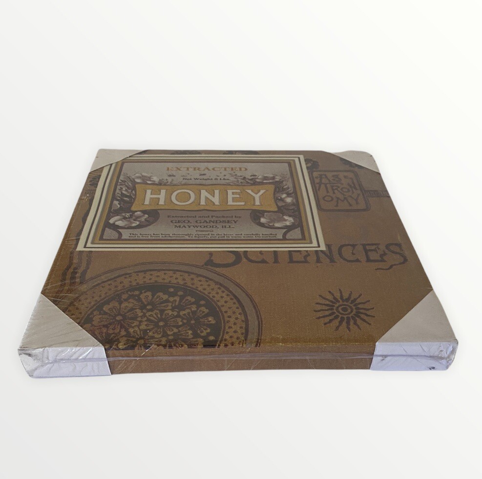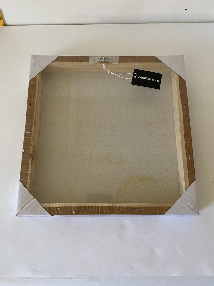 Creative Co-op Wood Stretched Canvas "Honey Moon" Wall Art Picture 12”x12” NWT Outer plastic packing may have some rips, see pictures for examples.