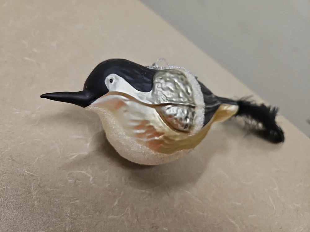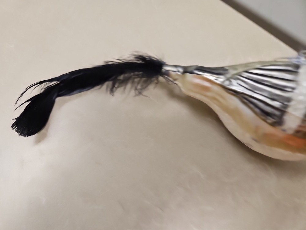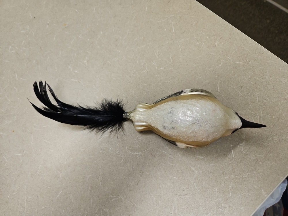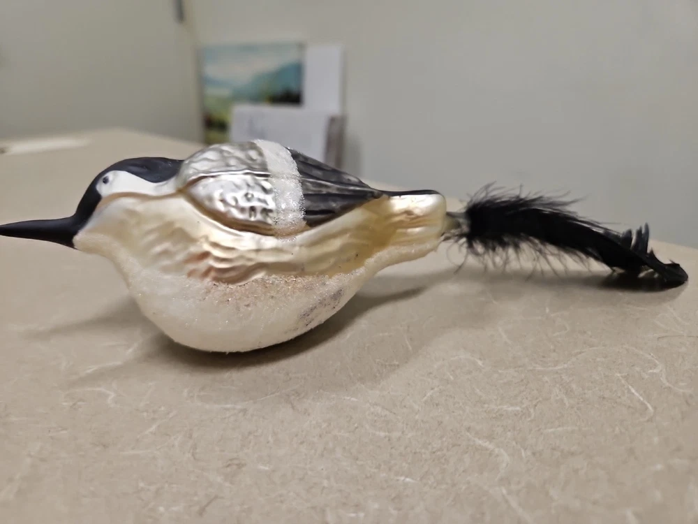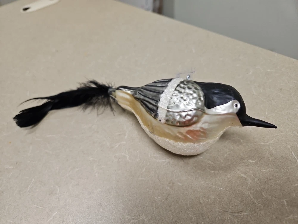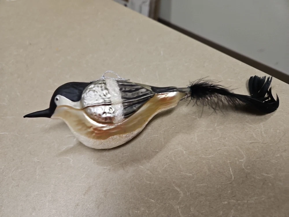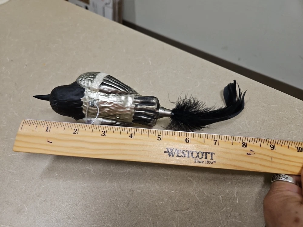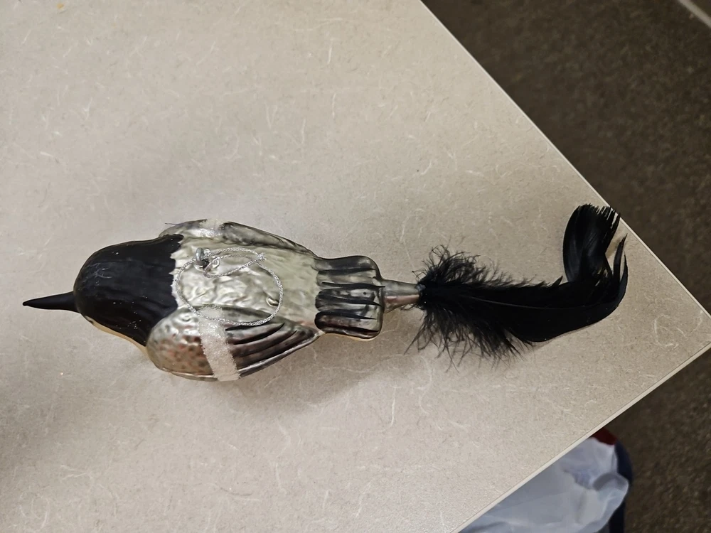 Add a touch of vintage charm to your Christmas decor with this Creative Co-Op mercury glass bird ornament. The black bird features a delicate feather tail and is expertly crafted from glass and feather materials. Perfect for any Christmas occasion, this ornament is a must-have for any collector. The bird shape and black color make this ornament a unique addition to your collection. Celebrate the holiday season with this beautiful and unique ornament that will add a touch of elegance to your tree.