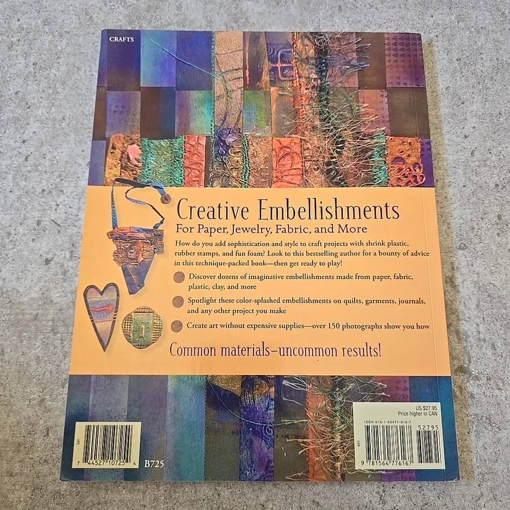 This book by Sherrill Kahn titled "Creative Embellishments: For Paper, Jewelry, Fabric, and More" is a must-have for anyone interested in crafts and hobbies. It is filled with over 100 pages of useful tips, tricks, and tutorials on how to enhance your projects with creative embellishments. The book is a non-fiction narrative published by Martingale & Company in 2007. The trade paperback format with an item length of 11.1 inches, item height of 0.3 inches, and item width of 8.2 inches makes it easy to carry around and use as a reference. The book is written in English and has illustrations to guide readers in making their projects.