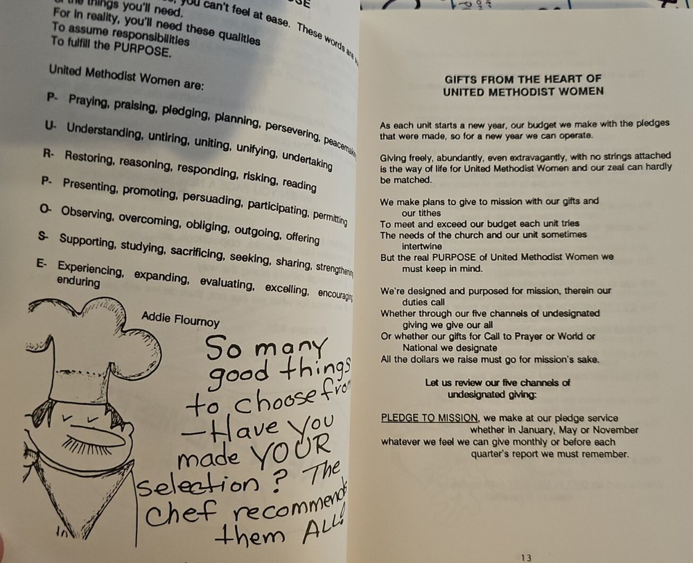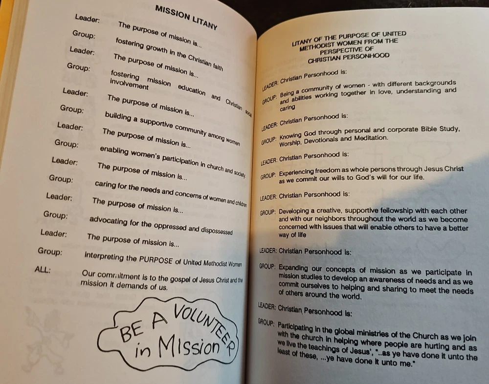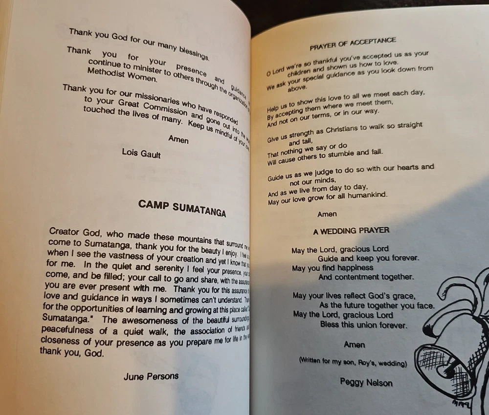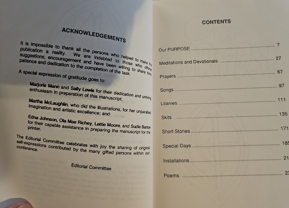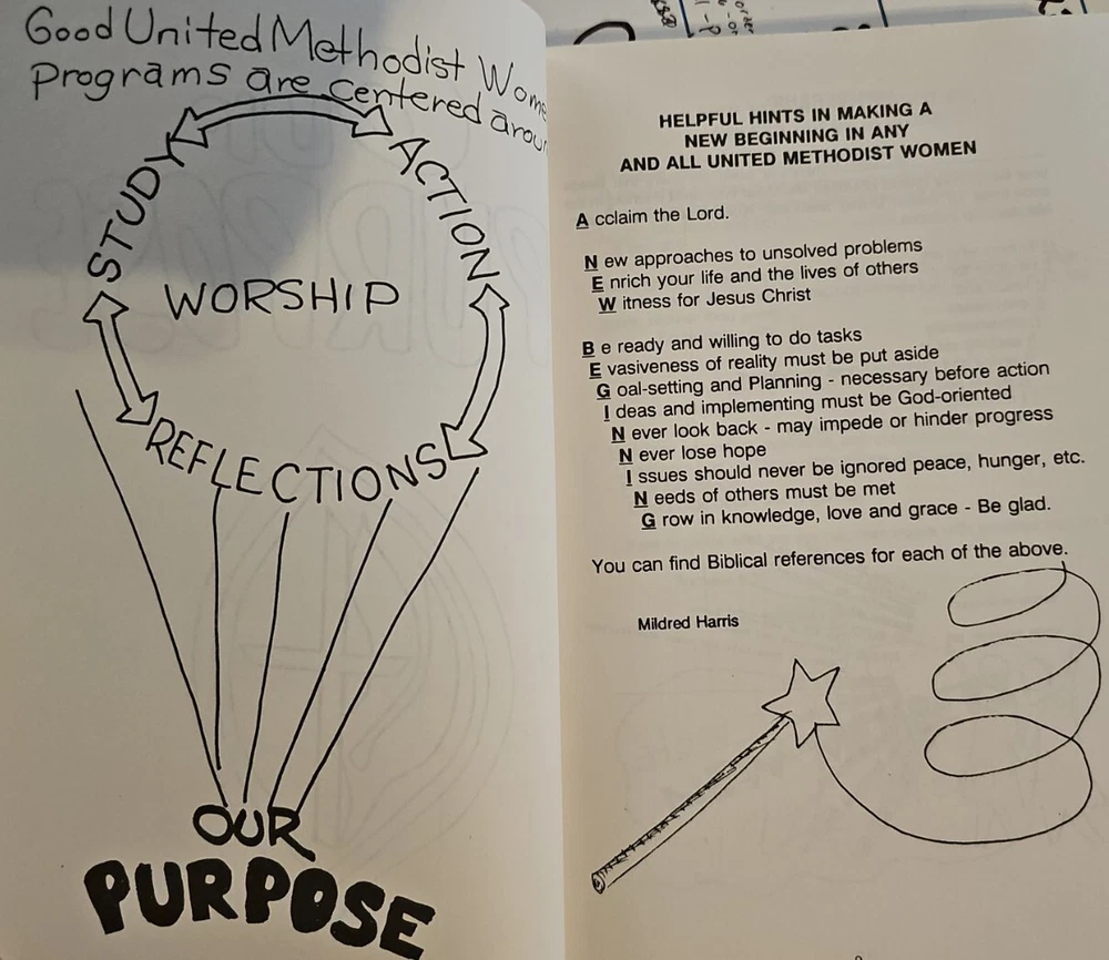 This Book Is A Rare Find And Is An Absolute Delight And Pleasure To Read. This Book is Filled With United Methodist Women's Meditations, Devotionals, Prayers, Songs,Litanies,Skits,Short Stories, Special Days,Poems And So Much More. 320 Pages Of Wonderful Creative Expressions. Please look at pictures closely no rips or tears in excellent condition. This book is an absolute delight.