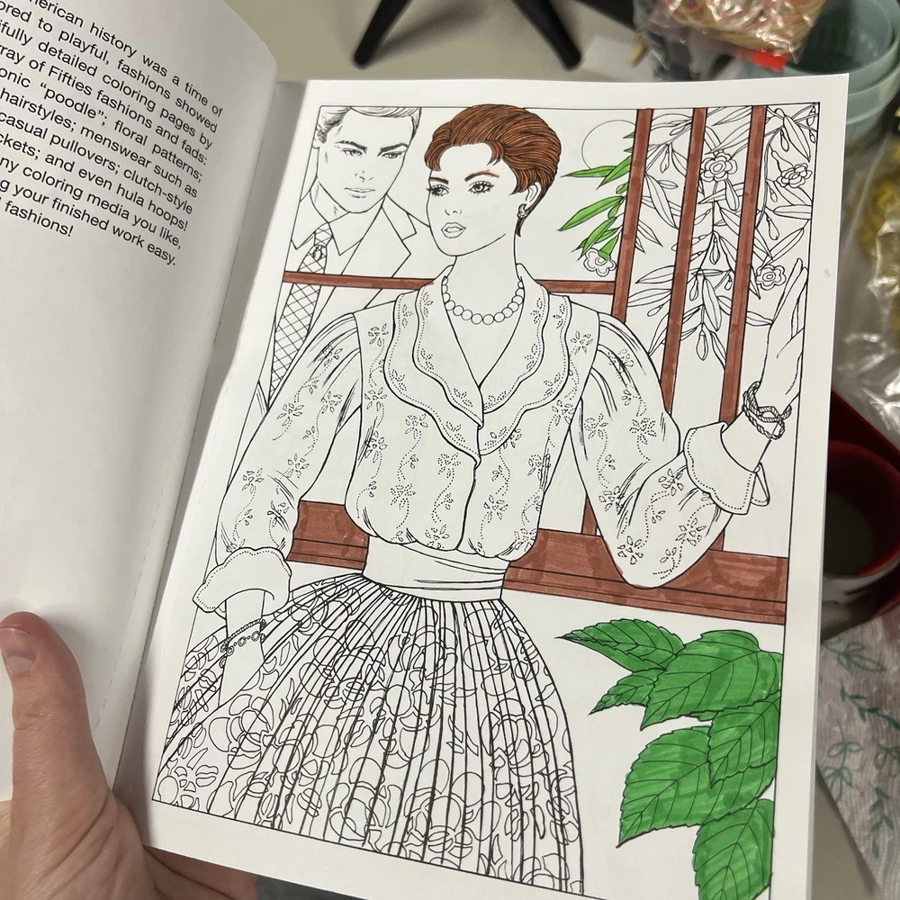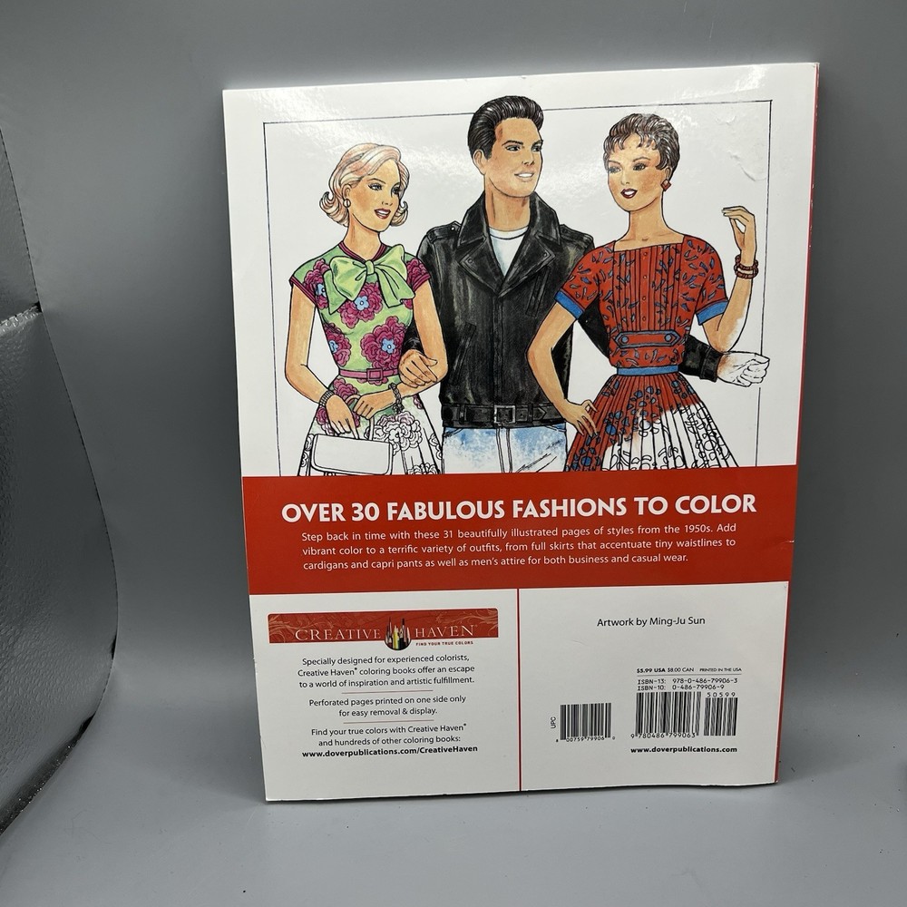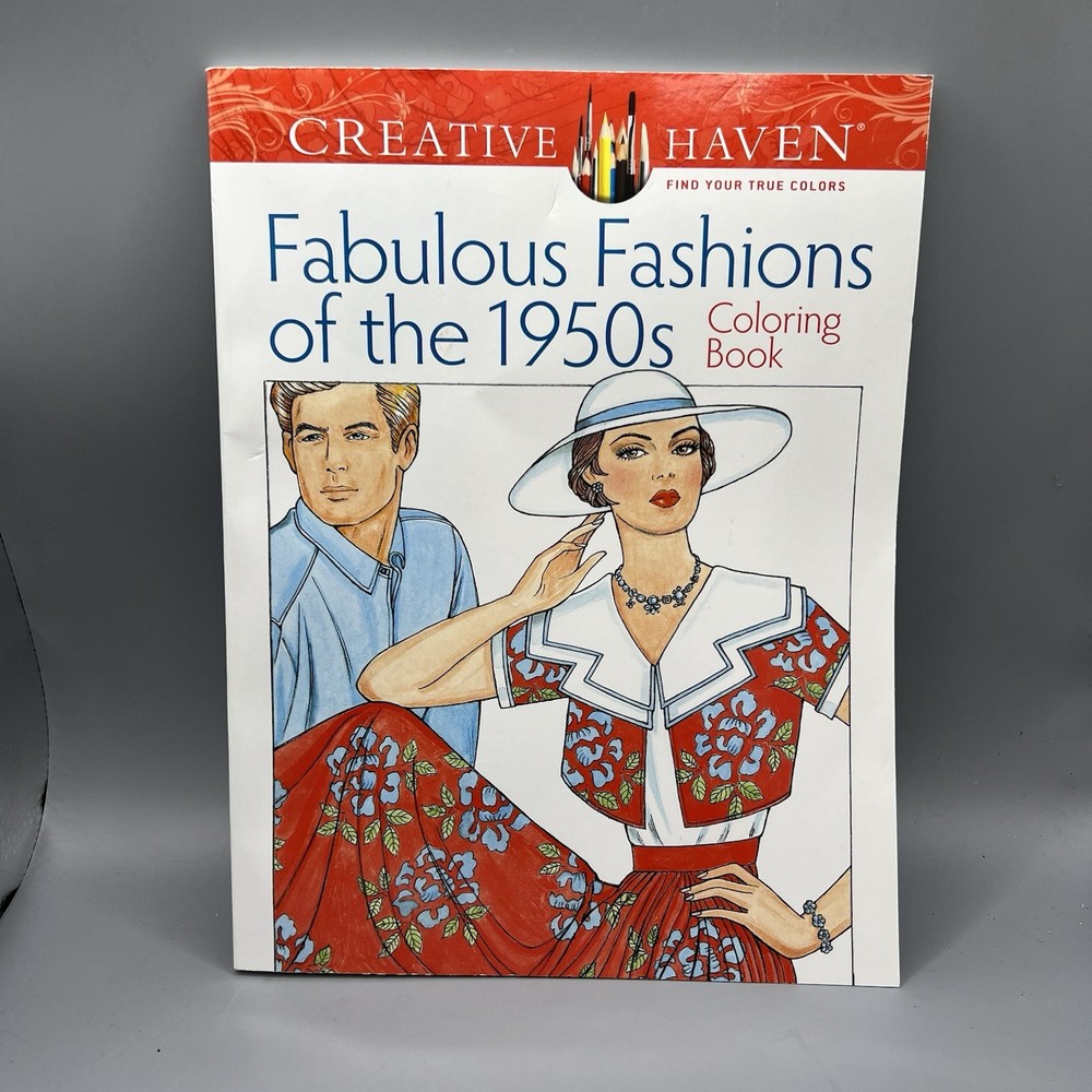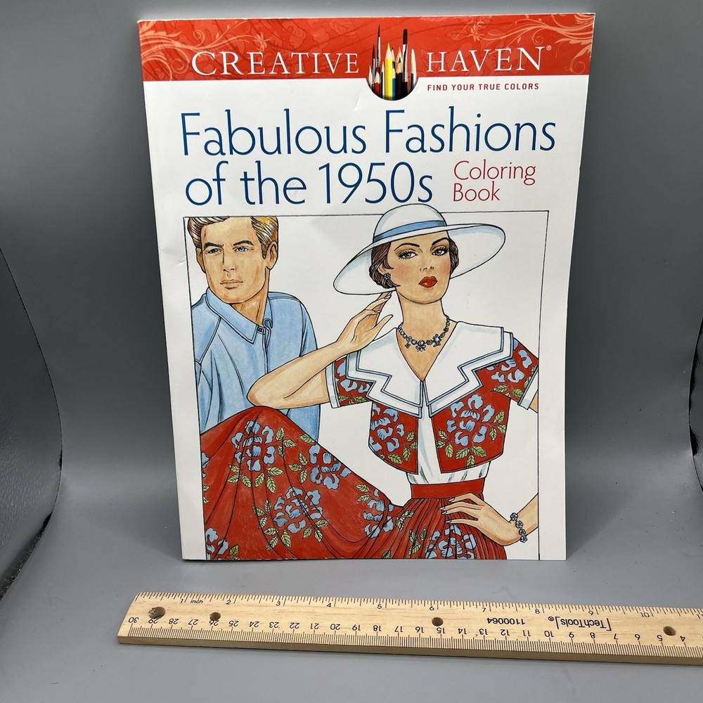 Get ready to take a trip back in time with the Creative Haven Fabulous Fashions of the 1950s Coloring Book. This coloring book features stunning illustrations of the fashionable designs of the 1950s, with a variety of pages to color and patterns to follow. It's perfect for adult coloring book enthusiasts who are interested in fashion and popular culture. Please note that there is some drawing on the first page (see last photo) With 64 pages of beautiful designs, this coloring book is sure to provide hours of entertainment. The book measures 10.9 inches in length and 8.2 inches in width, making it the perfect size for coloring on a table or lap. The book's pages are made of high-quality paper, ensuring that your colors will stay bright and vibrant. Whether you're a fashion lover or just looking for a fun and relaxing activity, the Creative Haven Fabulous Fashions of the 1950s Coloring Book is a must-have addition to your collection.