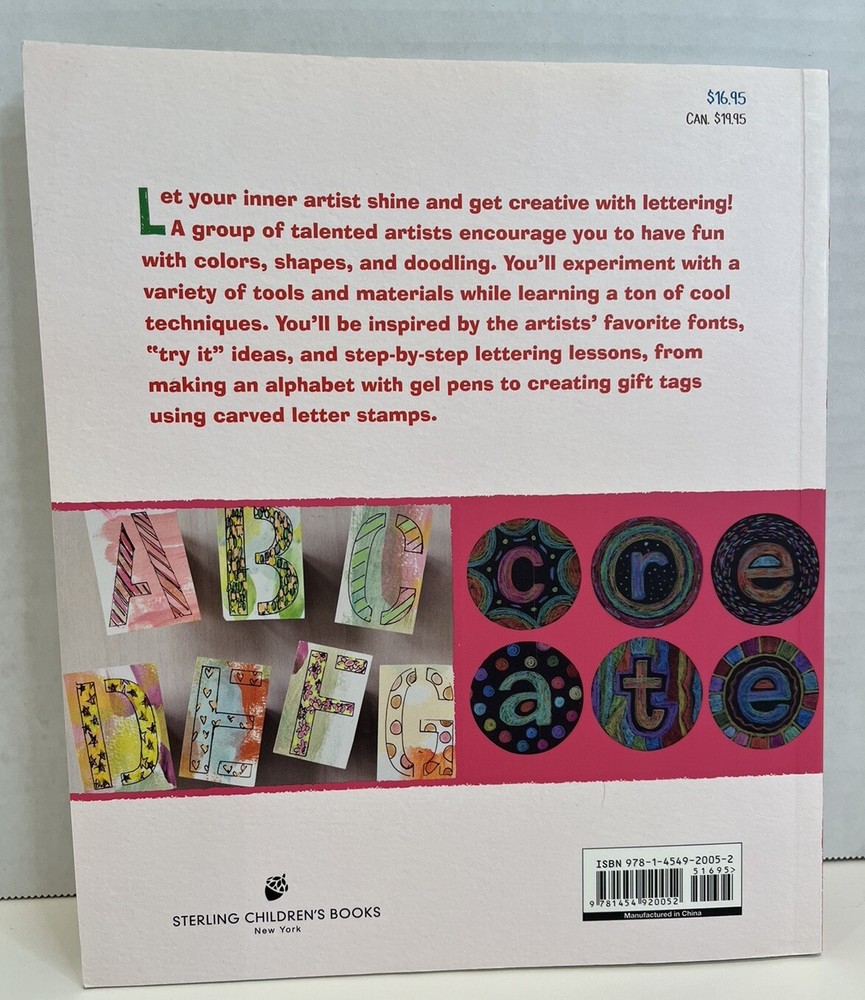| Synopsis | Techniques and tips from top artists! Hand lettering is a visually dynamic and accessible way to add textual elements to any type of craft, from journals to mixed-media art. Some of the most accomplished artists present their favorite lettering techniques, illustrated with inspiring examples of their own work and accompanied by step-by-step instructions that kids can easily follow. No other book on the topic presents such a wide variety of original alphabets, font styles, and creative projects for young artists!, Hand lettering is a visually dynamic and accessible way to add textual elements to any craft. Some of the most accomplished artists present their favorite lettering techniques, illustrated with examples of their own work and accompanied by kid-friendly step-by-step instructions. No other book on the topic presents such a wide variety of original alphabets, font styles, and creative projects for young artists!, Hand lettering is a visually dynamic and accessible way to add textual elements to any type of craft, from journals to mixed-media art. Some of the most accomplished artists present their favorite lettering techniques, illustrated with inspiring examples of their own work and accompanied by step-by-step instructions that kids can easily follow. No other book on the topic presents such a wide variety of original alphabets, font styles, and creative projects for young artists |
