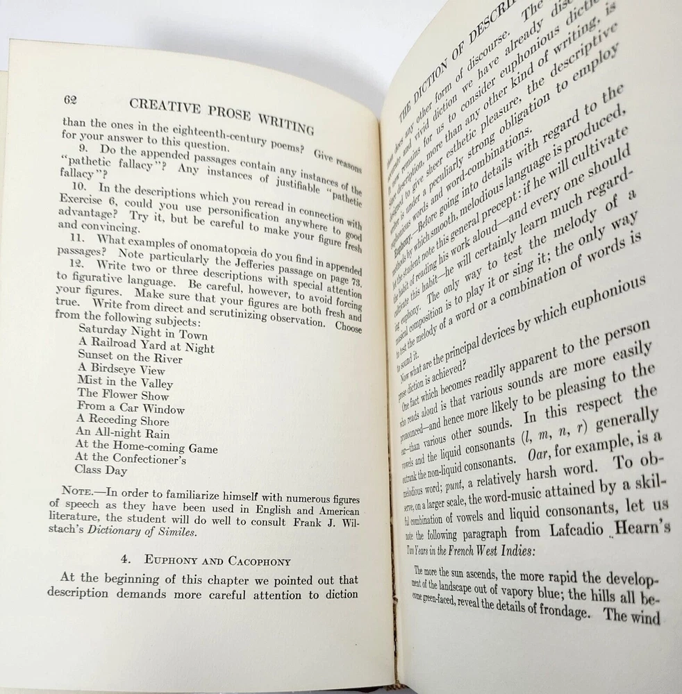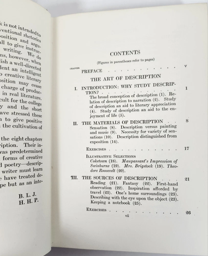 Chapter Titles include: Introduction: Why Study Description, The Diction of Description, The Technique of Description....First Edition, 1927. Hardcover in Very Good Vintage Condition. Ships Quickly. Combined Shipping is Available. If it does not show in your cart, please email.