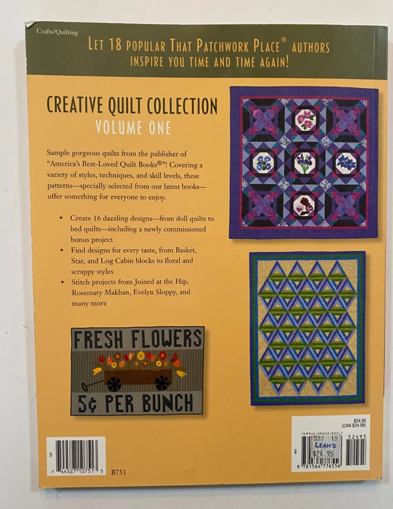 Creative Quilt Collection Volume One : From That Patchwork Place - Like New Anniversary Stars Nantucket Baskets Triangle Swirls Interlocked Mosaic Stars Underground Railroad Civil War Nine Patch Road to Paradise Fresh Flowers Sweet Dreams Bright Bouquets Log Cabin Polka Holiday Topper Scotch Granny Quilt Scotch Granny Throw Plan B LeMoyne Star String Quilt Quiltmaking Basics
