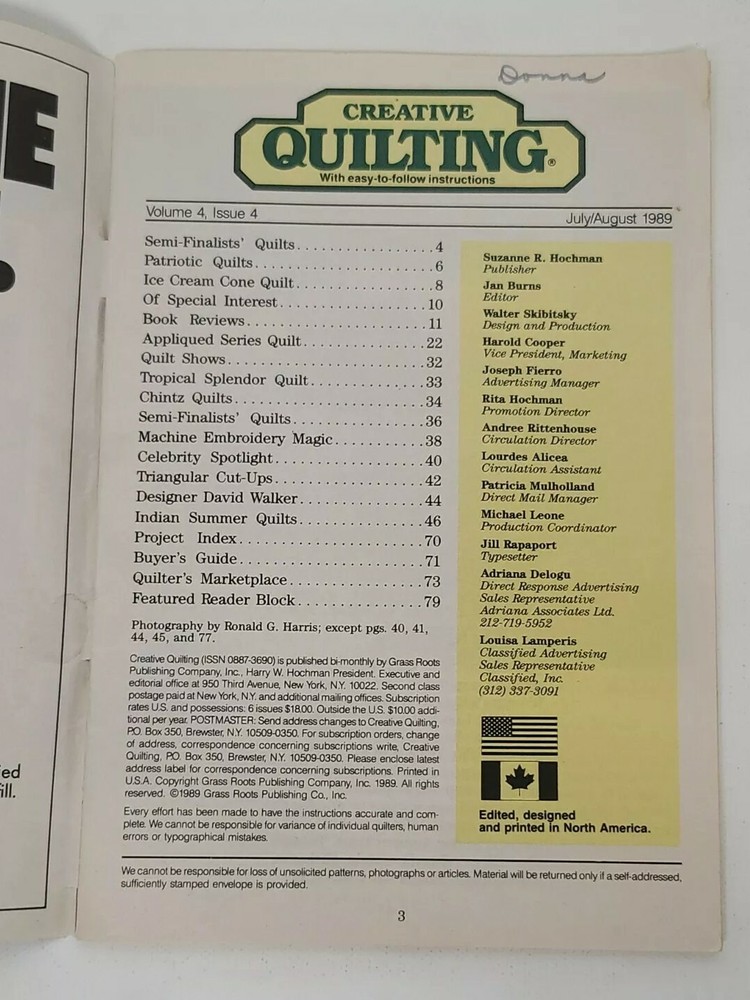 Creative Quilting July August 1989 Quilts for Lazy Summer Days Patriotic Patterns Vintage 80s 79 pages Ships within 1 business day. ms-02