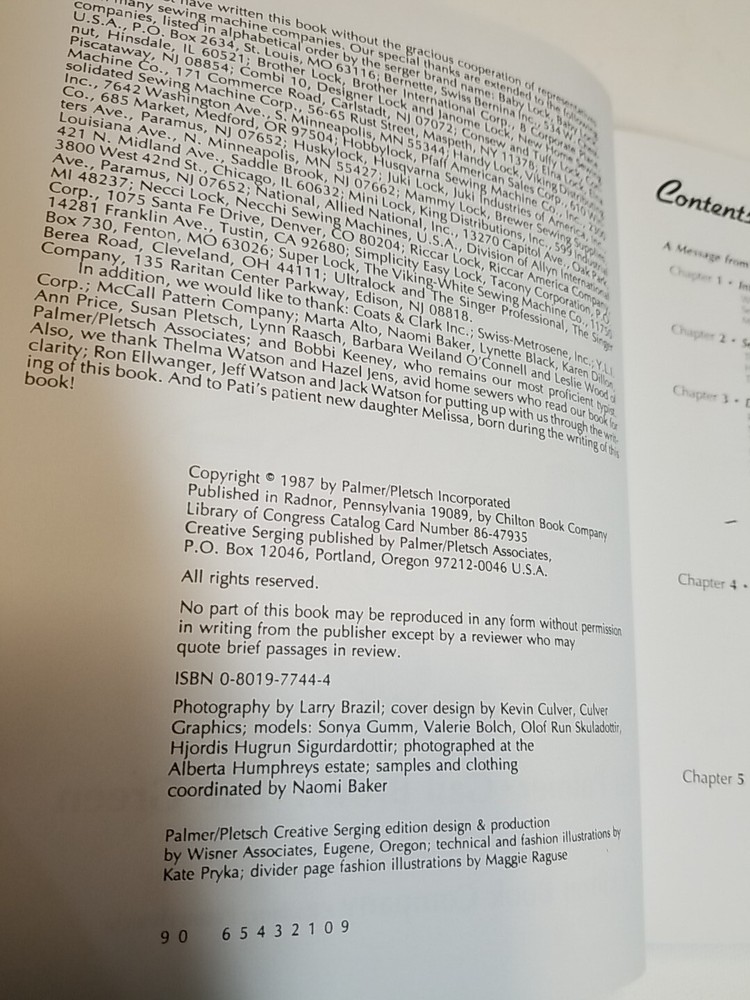 Creative Serging Illustrated Pati Palmer Gail Brown Sue Green ©1987 Chilton Book. Condition is Very Good. Shipped with USPS Media Mail.