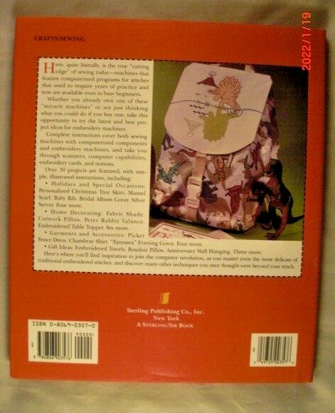Title: Creative Sewing Projects with Computerized Machines Author: Pamela J. Hastings Copyright: 1997 Pages: 128 Format: Hardbound with dust jacket Contents: Introduction Chapter 1: Understanding the Equipment Chapter 2: Before you Begin Chapter 3: Holidays and Special Occasions Personalized Christmas Tree Skirt Mantel Scarf Christmas Stocking Baby Bib Baby Pillow Bridal Album Cover Silver Server Table Runner Greeting Cards Chapter 4: Home Decorating Shaped Valance Fabric Shade Cutwork Pillow Personalized Flange Pillow Seaside Pillow Peter Rabbit Valance Heirloom Pillow Lampshade Picture Frame Embroidered table Toper Chapter 5: Garments and Accessories Picket Fence Dress Chambray Shirt "Fantasea" Evening Gown Monogrammed Clutch Monogrammed Scarf Dinosaur Backpack Christmas Apron Chapter 6: Gift Ideas Anniversary Wall Hanging Embroidered Towels Baby Pillowcase Boudoir Pillow Napkins and Place Mats Embroidered Sheets and Pillowcase If you have any questions, please email prior to bidding. Free Shipping within the United States International bidders, please email for a shipping quote. All custom costs are the responsibility of the buyer. Payment by Credit Card, PayPal, Apple or Google Pay . The book will be sent by media mail. Your package will be packed with care in a padded envelope, and will remain the sellers responsibility until you receive it. Mailing times may vary, be patient it will get there, delivery confirmation is done on all USA mailings. Payment requested within 3 days of auctions end. If you notice any problems with the item(s), not as described, broken, cracked, not enough sent, etc. Please let me know so that I can work out a solution that works for you. Generally I ship Monday thru Friday except for USA federal holidays.
