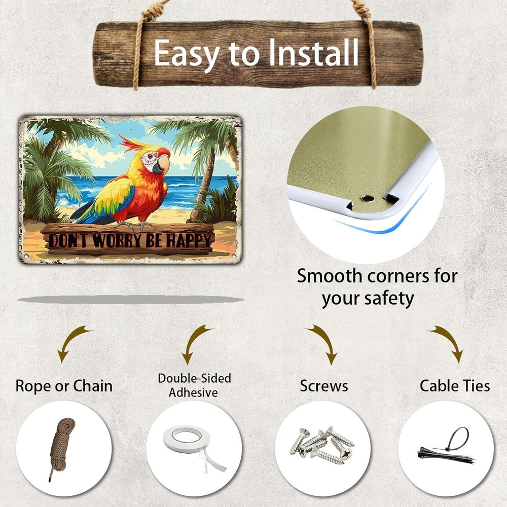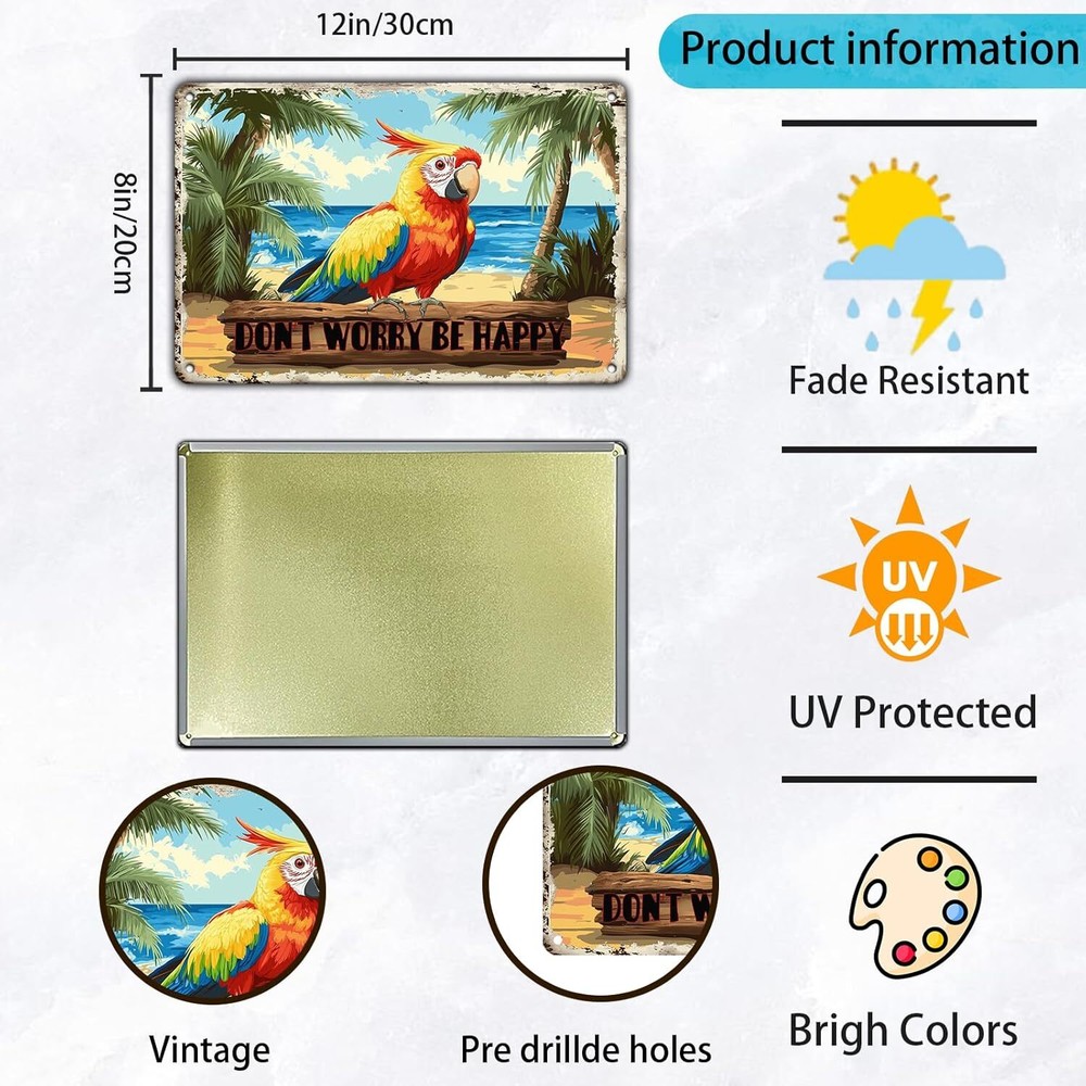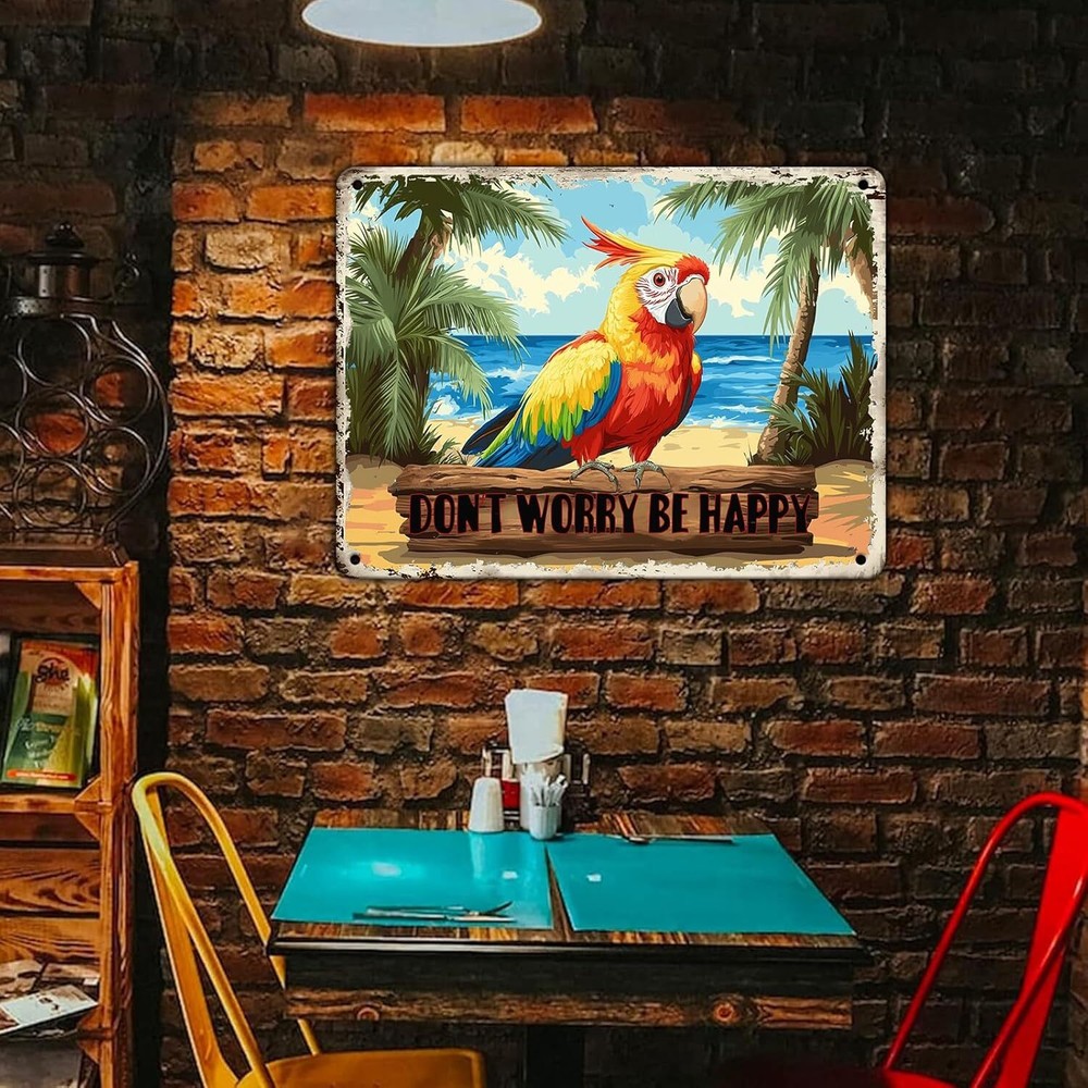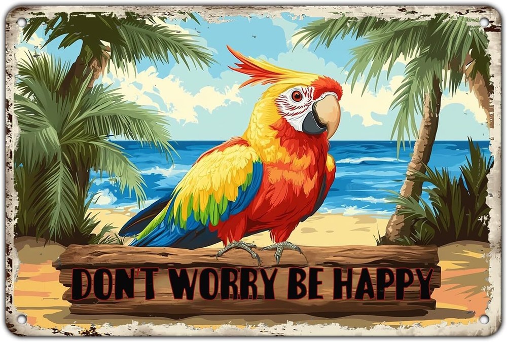 This cheerful parrot sign instantly brightened my patio! The quality is fantastic - no sharp edges and it's held up perfectly outdoors. Such a fun, uplifting addition to my space that always gets compliments.