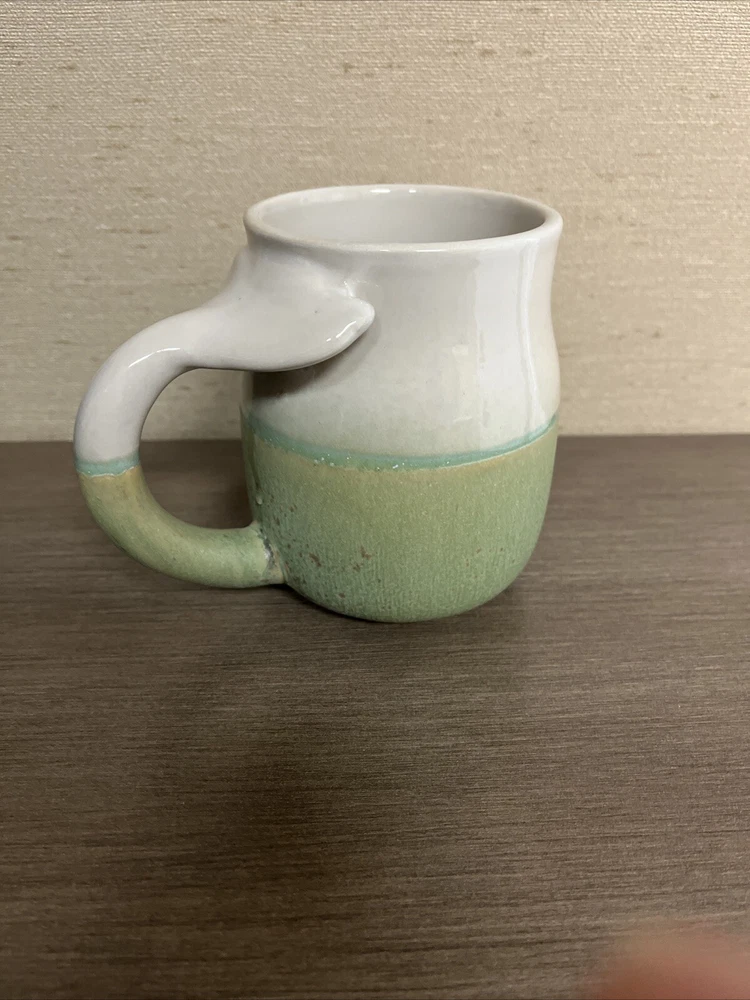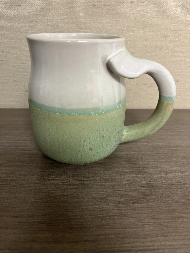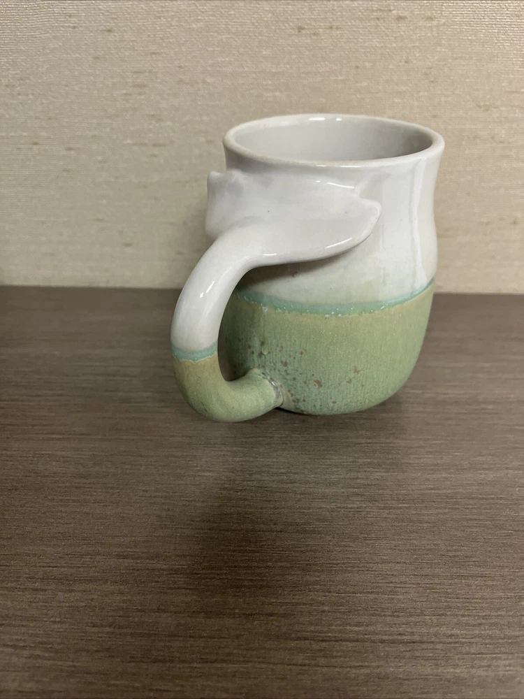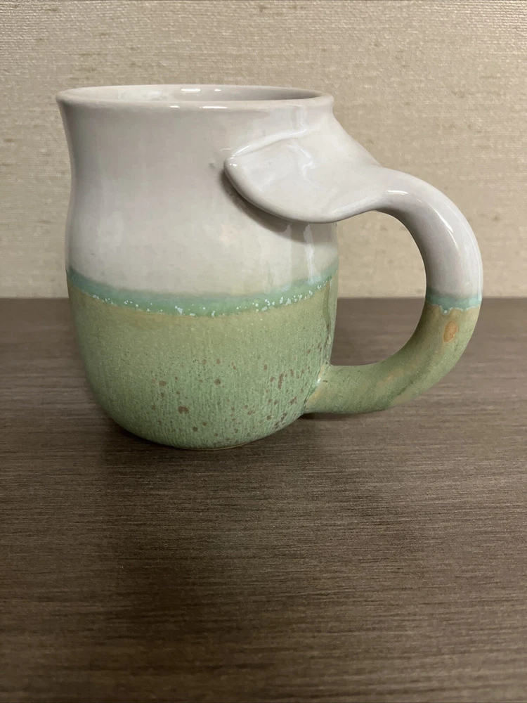This Creative Co-Op Inc stoneware mug features a unique whale tail handle and is made of ceramic & porcelain in green and off white colors. The novelty style design is original and perfect for coffee ...