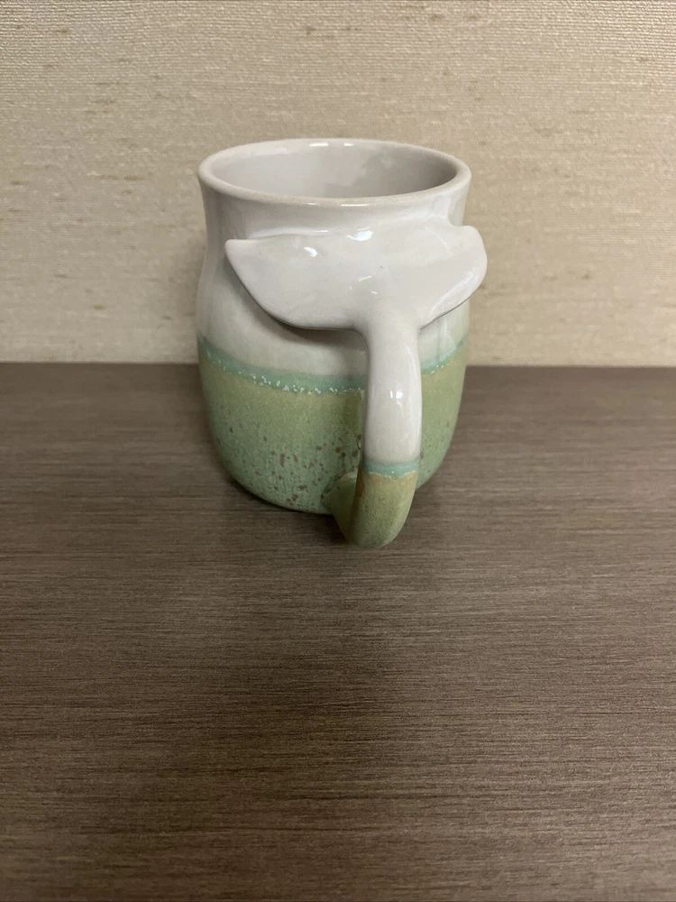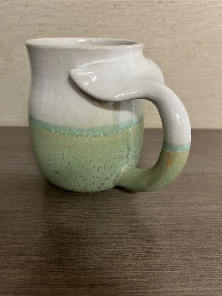 This Creative Co-Op Inc stoneware mug features a unique whale tail handle and is made of ceramic & porcelain in green and off white colors. The novelty style design is original and perfect for coffee lovers.