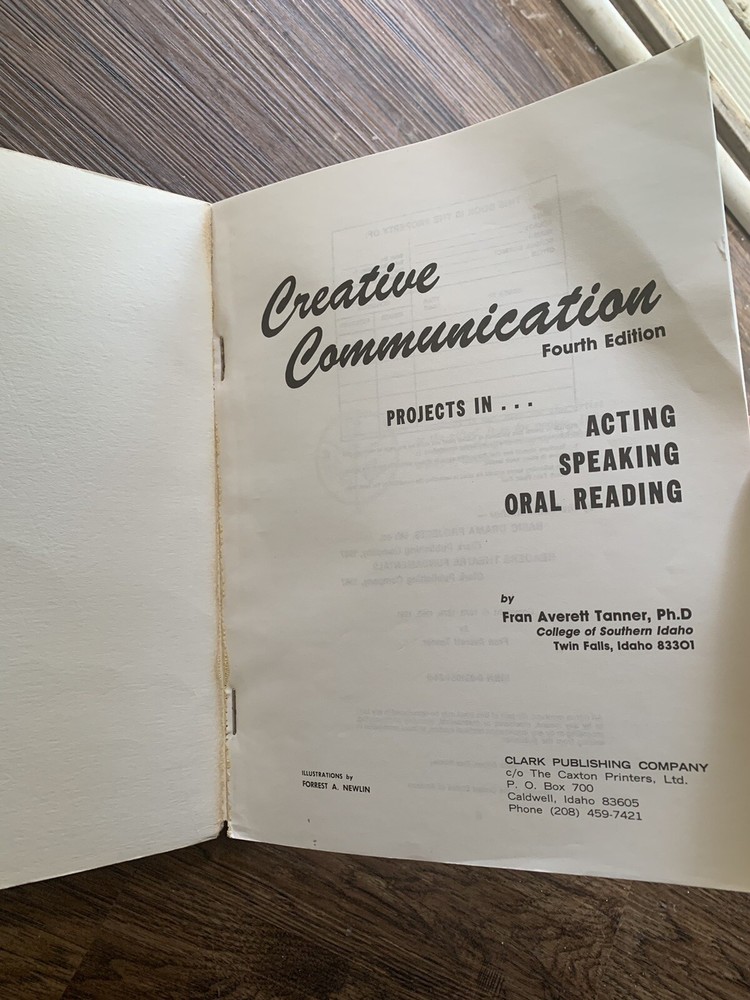 Creative communication projects in acting, speaking, oral reading Fourth Edition. Nice condition with some wear. Doesn’t look like any of the pages have been filled in. Shipping media mail.