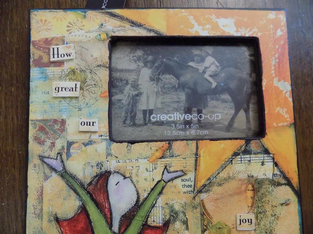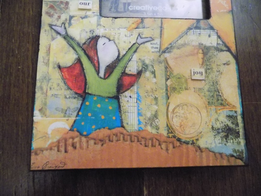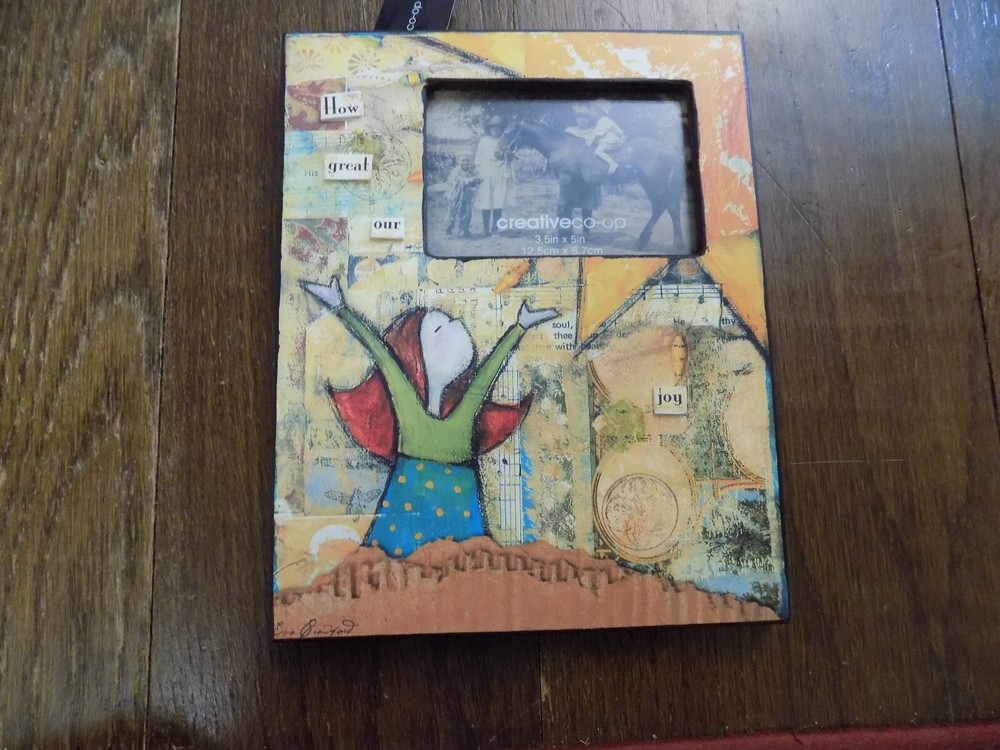 | Features | Distressed, looks like mixed media |