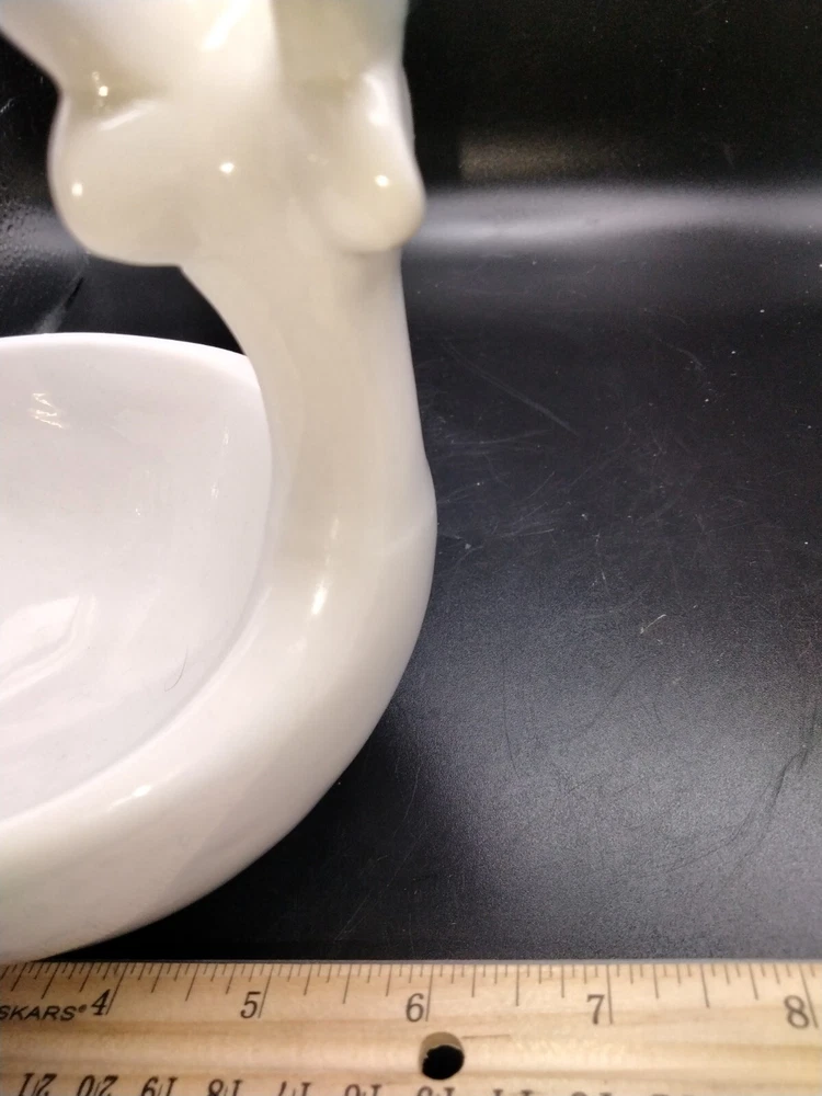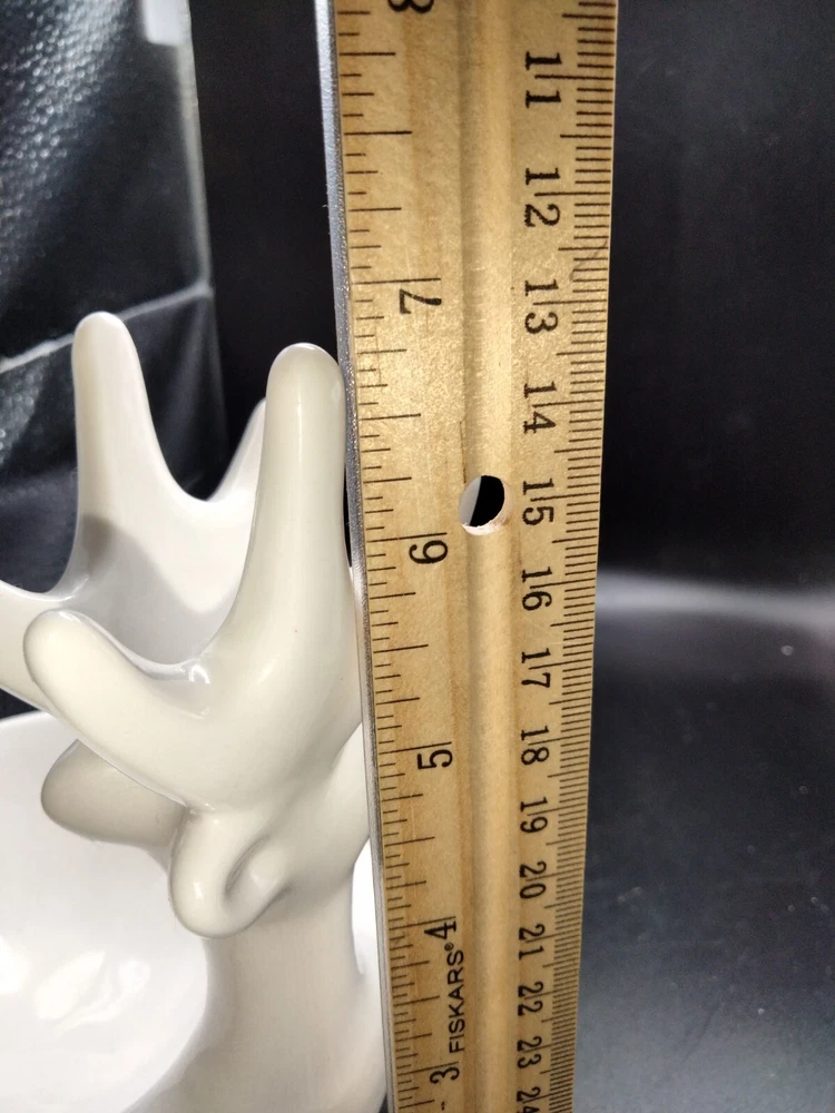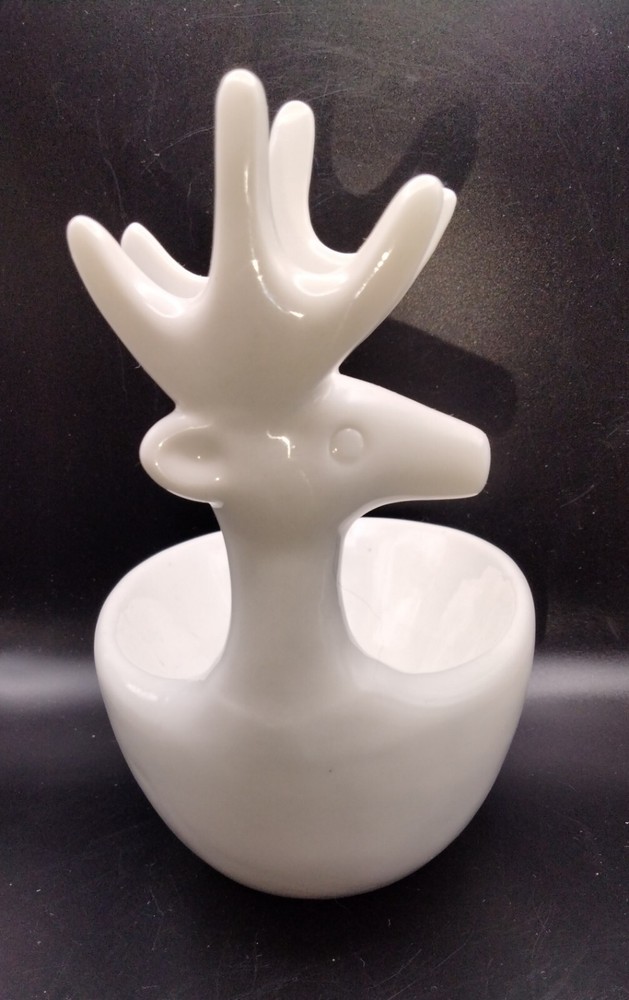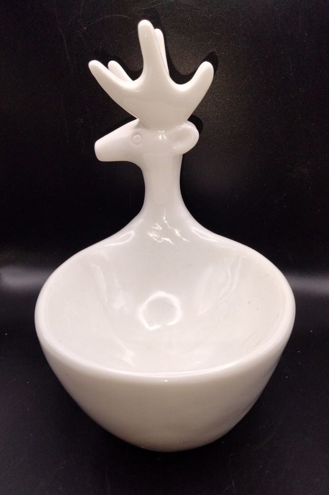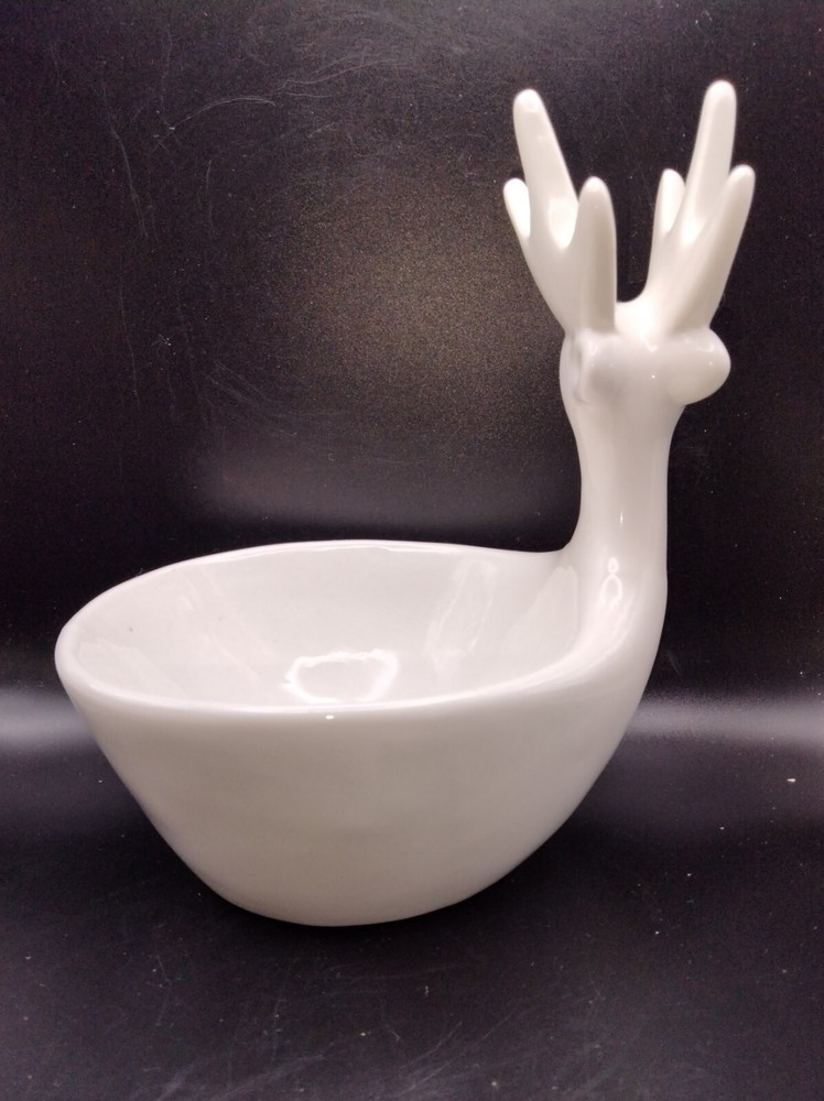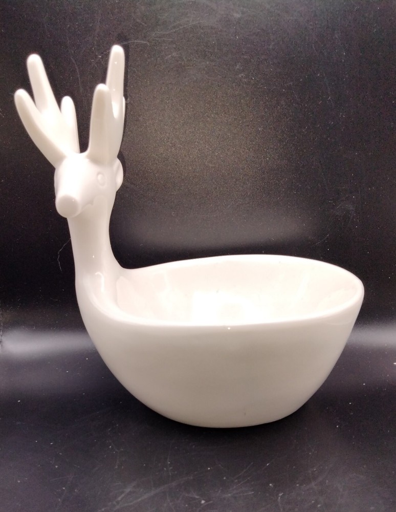 This Creativeco-op 3D White Deer Trinket Candy Plant Dish Votive Candle is a stunning addition to any home decor. The oval shape and glossy finish of this ceramic bowl make it perfect for all occasions. The bowl is 4.5 inches deep and 7 inches tall, with a width of less than 8 inches. The bowl features a beautiful deer-themed design, making it a great gift for any animal lover. It is an original piece and not a reproduction. This bowl is perfect for serving candies, nuts, or any other small item. Get this unique piece for your home today! No chips or cracks
