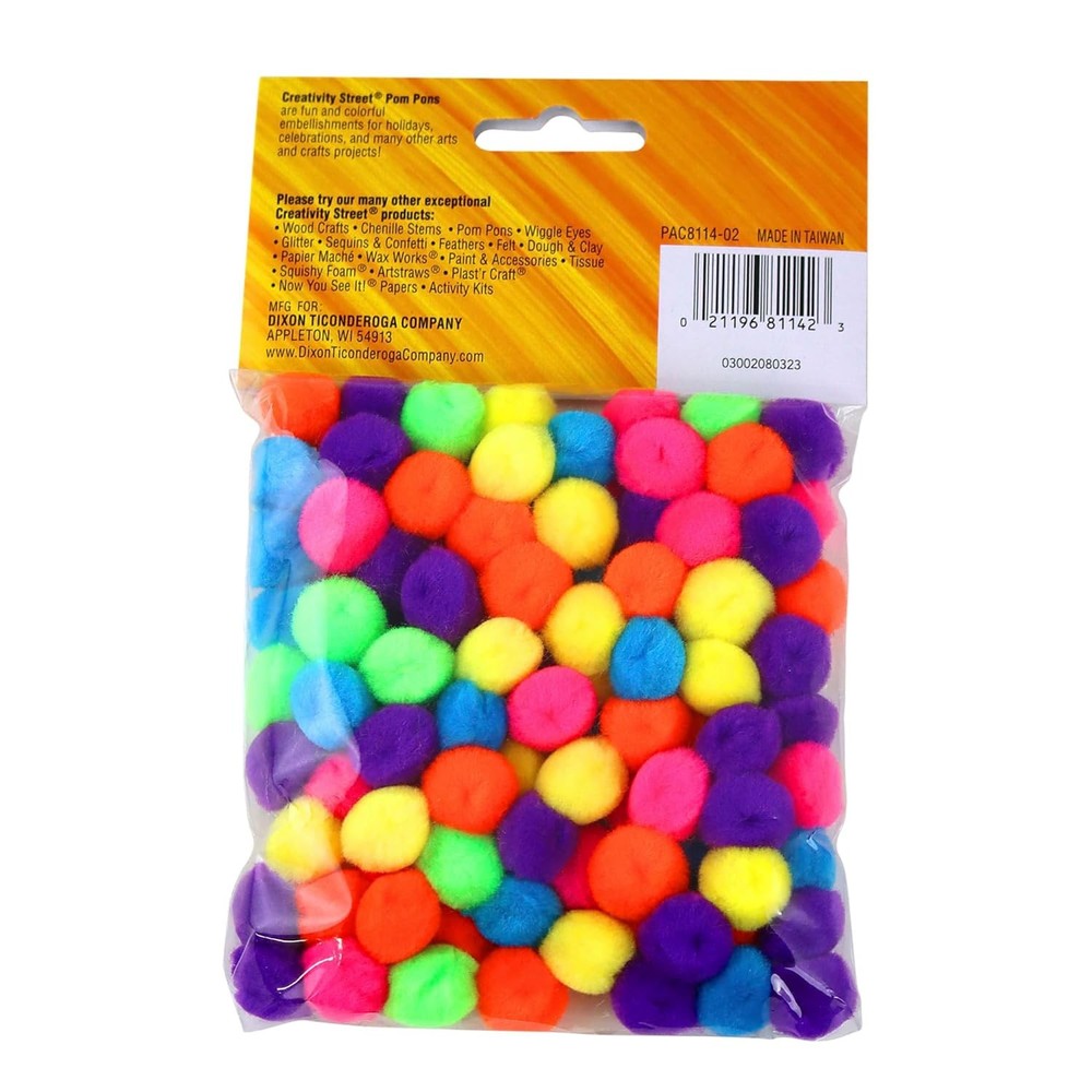 Creativity Street Hot Colors Pom Pons, 0.5-Inch, 1/2 in, Assorted Color Product Details Product Dimensions : 5 x 4 x 0.1 inches; 0.71 ounces Manufacturer recommended age : 36 months - 15 years Item model number : 8114-02 Manufacturer : Chenille Kraft Co Color: Assorted Hot Color Brand: Creativity Street Size: 1/2 in Material: Polyester Model Name: Acrylic Soft N Lively Mini Non-Toxic Pom Pon 100 count package of pom pons Measure 1/2" in diameter Crush resistant, Assorted hot colors Add texture, dimension and color to any art project Allows young creative minds to flourish So many uses for these colorful and versatile Creativity Street Pom Pons. Give texture and dimension to any project! Wreaths, flowers, wearables and more, kids are limited by only their imagination. Great for seasonal and holiday projects, these Pom Pons come in a variety of sizes, colors and patterns. And now, available in convenient peel and stick!