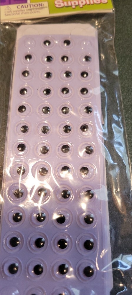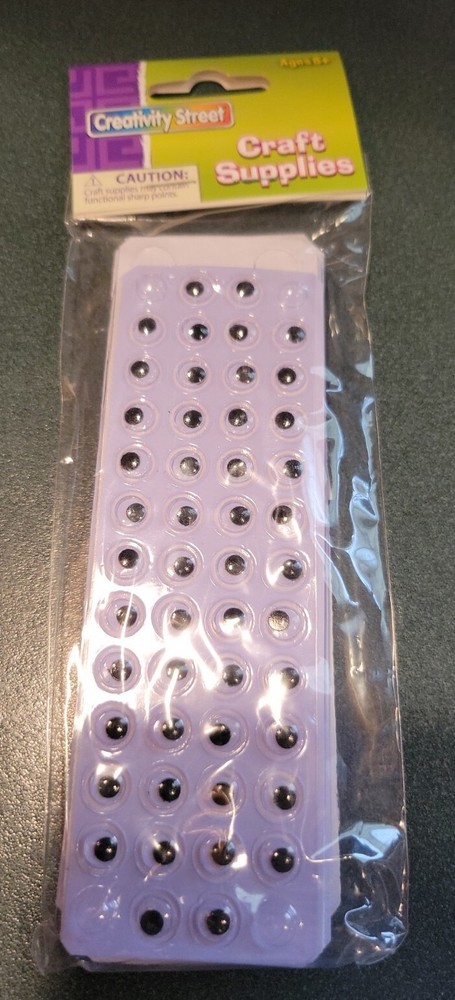 Creativity Street Peel and Stick Wiggle Eyes, Assorted Sizes, Black on White,. 4 cards of different sizes. 44 on the front card, 22 on the back card. Amazin says 125, however not confirmed on package.