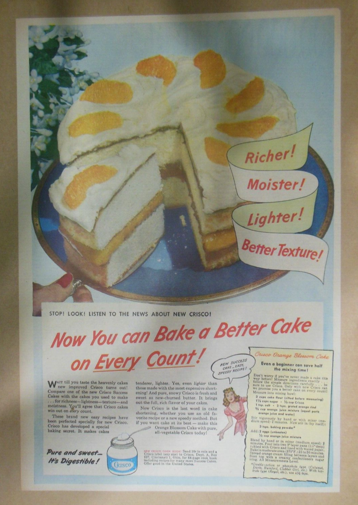 This is a Crisco Shortening for Baking Ad . Most Feature Cool Old Recipes ! Very Well Done Ads! Great Artwork! This was cut from the original newspaper Sunday Magazine section of 1925's - 1950's. Size : ~11 x 15 inches (Tabloid Full Page). Paper : Some light tanning/wear, otherwise: Excellent! Bright Colors! Pulled from the original newspapers! (Please Check Scans) USA Postage is Free! Total postage on International orders is $25.00 Flat Rate . I combine postage on multiple pages . Check out my other auctions for more great vintage Comic-strips and Paper Dolls. Thanks for Looking! *Fantastic Pages for Display and Framing! * Please note : collecting and selling comics has been my hobby for over 30 years. Due to the hours of my job I can usually only mail packages out on Saturdays . I send out First Class or Priority Mail which takes 2 - 3 days to arrive in the USA and Air Mail International which takes 5 - 10 days or more depending on where you live in the world. I do not "sell" postage or packaging and charge less than the actual cost of mailing. I package items securely and wrap well. Most pages come in an Archival Sleeve with Acid Free Backing Board at no extra charge . If you are dissatisfied with an item. Let me know and I will do my best to make it right. Many Thanks to all of my 1,000's of past customers around the World. Enjoy Your Hobby Everyone and Have Fun Collecting!
