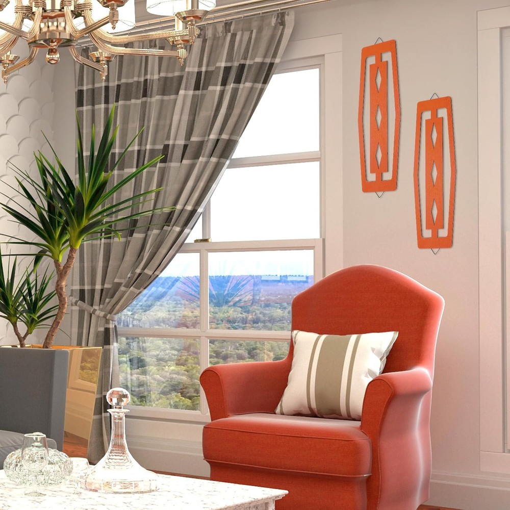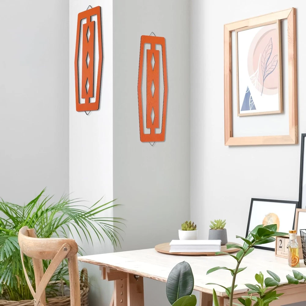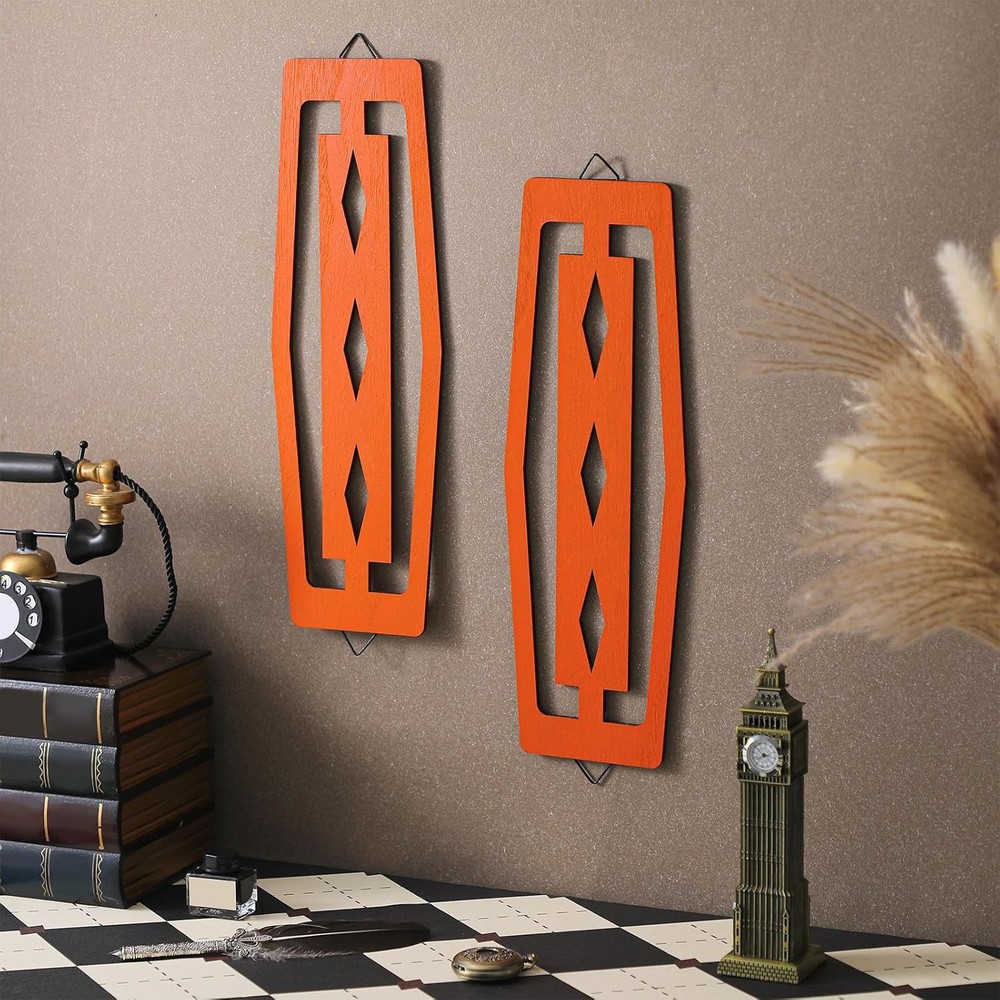These mid-century wall decors add a stylish retro touch to any room! The vibrant orange wood pairs perfectly with modern decor, and the craftsmanship is impressive. Lightweight yet sturdy, they were easy to hang and instantly brightened up my space. Love the vintage vibe—great value for two beautifully designed pieces!