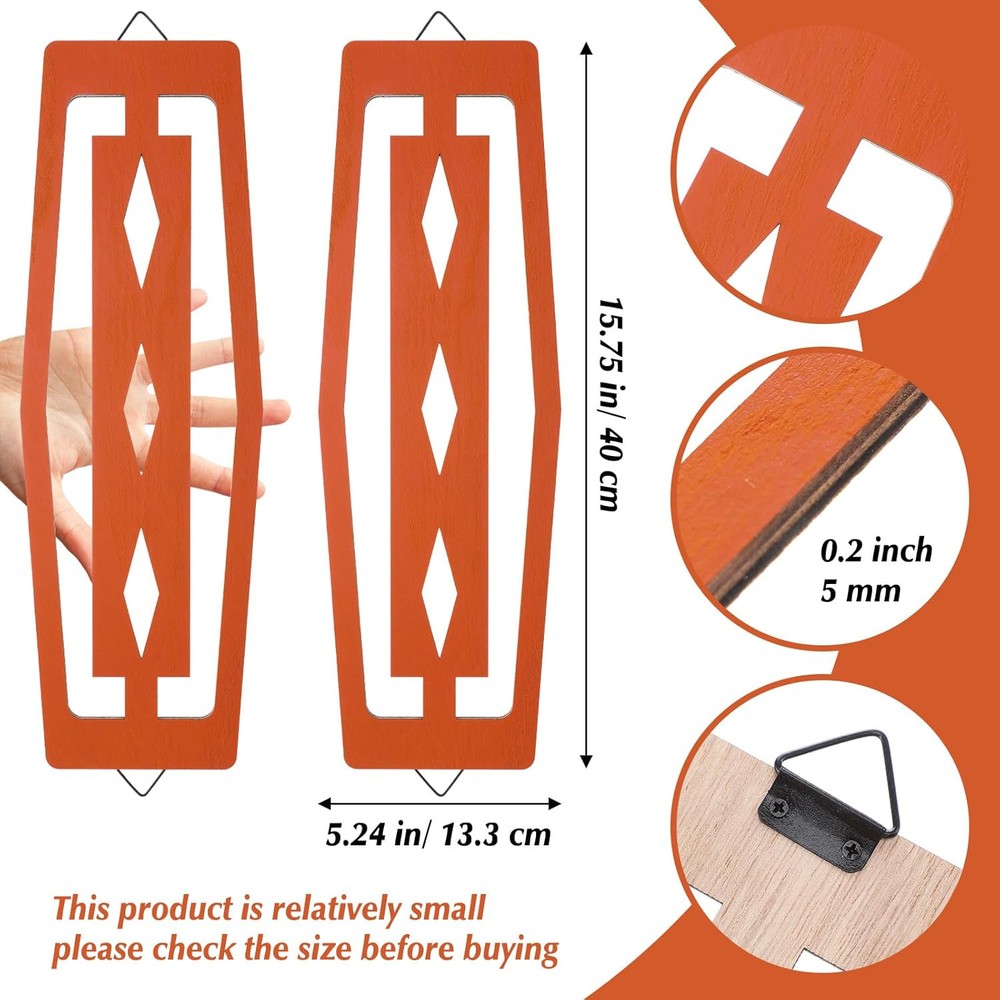 CroBlissful 2 Pcs Mid Century Wall Decor Wood Modern Orange Product Details Product Dimensions: 15.75 x 5.24 x 0.2 inches Item Weight: 6.5 ounces Manufacturer: CroBlissful Country of Origin: China Inclusive and Exquisite Design: includes 2 Mid Century modern style wall decor pieces, each individually crafted with an inspiring retro Mid Century theme; These Mid Century modern elegance wall accents cater to needs, enhancing the visual appeal of your space and fostering an attractive ambiance Inspiring Vintage Themes: each of the decorative mid century panels is meticulously designed, featuring an inspiring retro mid century theme that significantly enhances the visual attraction of your space; These wall panels are incredibly suitable for creating an enticing and refreshing modern atmosphere, contributing to a stylish ambiance Easy to Install: the wood mid century wall decor comes with a triangle hook on the back, facilitating easy installation; The simplicity of hanging these mid century wood panel wall art pieces allows for an easy experience, enabling you to transform your living or working spaces effortlessly Durable and Quality: these mid century modern elegance wall accents are made from quality, durable wood, illustrating the interplay of elegance and longevity; The mid century modern elegance wall accents are designed not just to impress but to stand the test of time, all while maintaining their minimalist and charm Features: These mid century geometric panels are valuable for accentuating different area, regardless of the style of your room. With these mid century wood panel wall arts, you can easily achieve a stylish and modern ambiance. These minimalist abstract geometric wood panels combine form and function, offering an innovative solution. Specifications: Material: wood Main color: wood color Size: approx. 15.75 inches x 5.24 inches x 0.2 inch/ 40 cm x 13.3 cm x 5 mm Package includes: 2 x Mid century modern style wall decors Notes: Manual measurement, please allow slight errors on size. The color may exist a slight difference due to different screen displays.