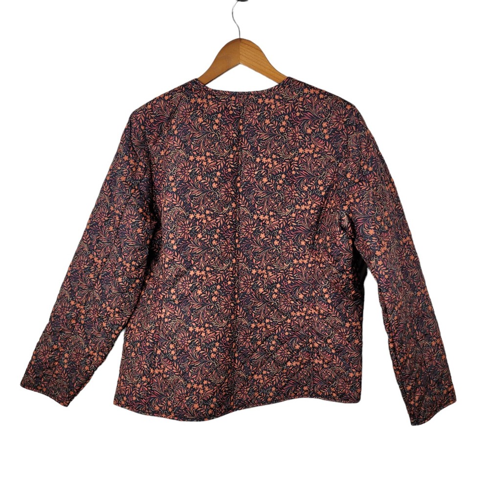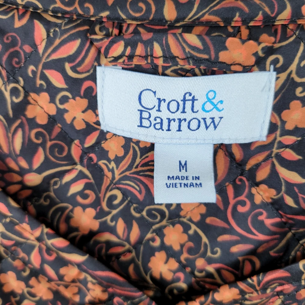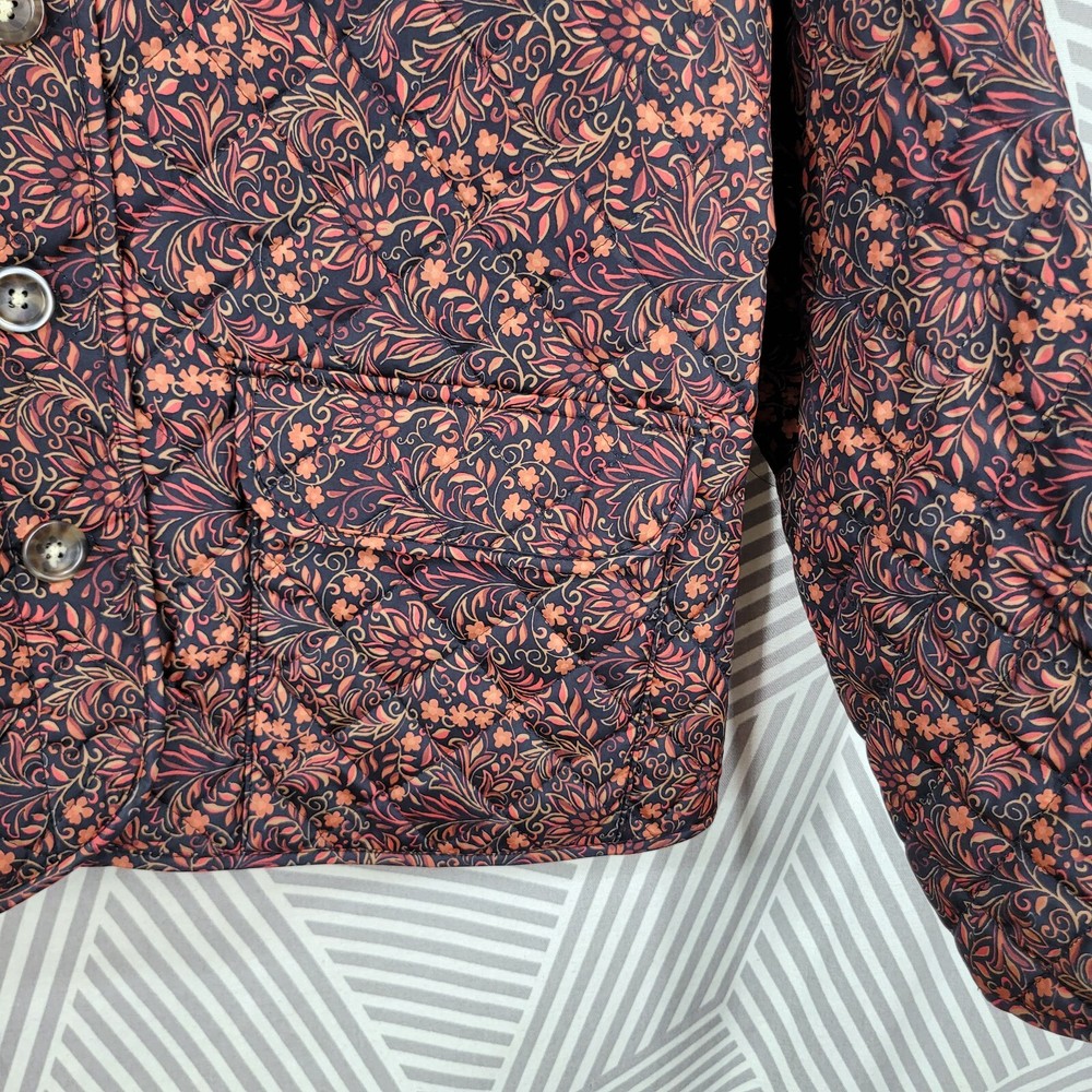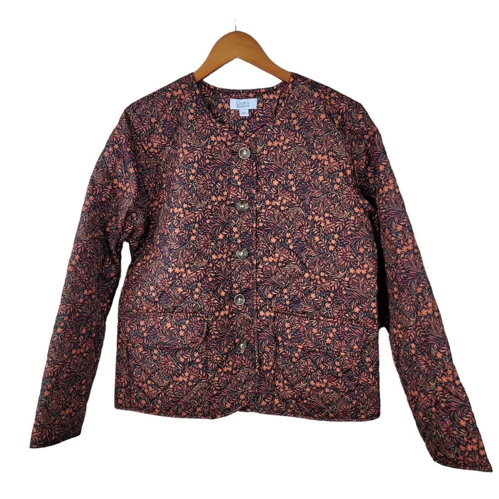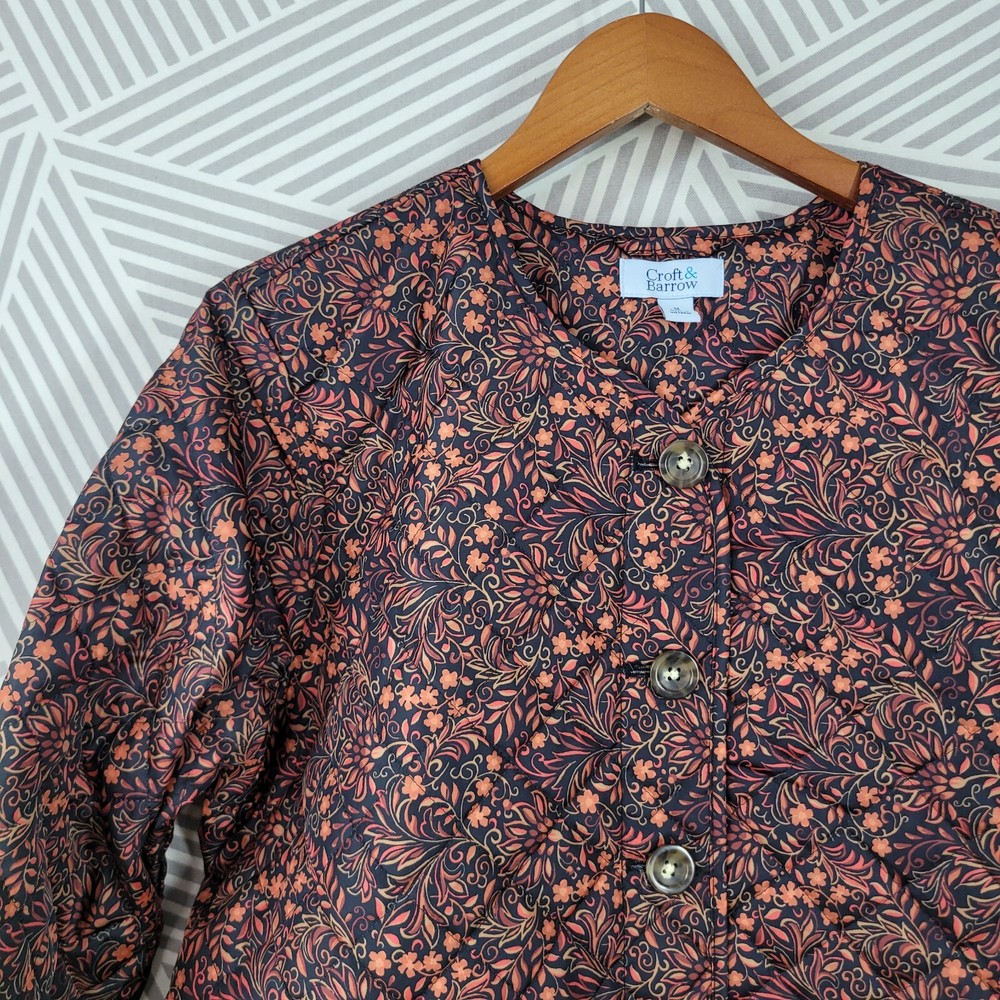 Croft Barrow Quilted Jacket Coat Size Medium Mid-weight Button Up Floral Orange This coat is in excellent condition It measures approximately 21.5" from armpit to armpit and 25" from shoulder to hem